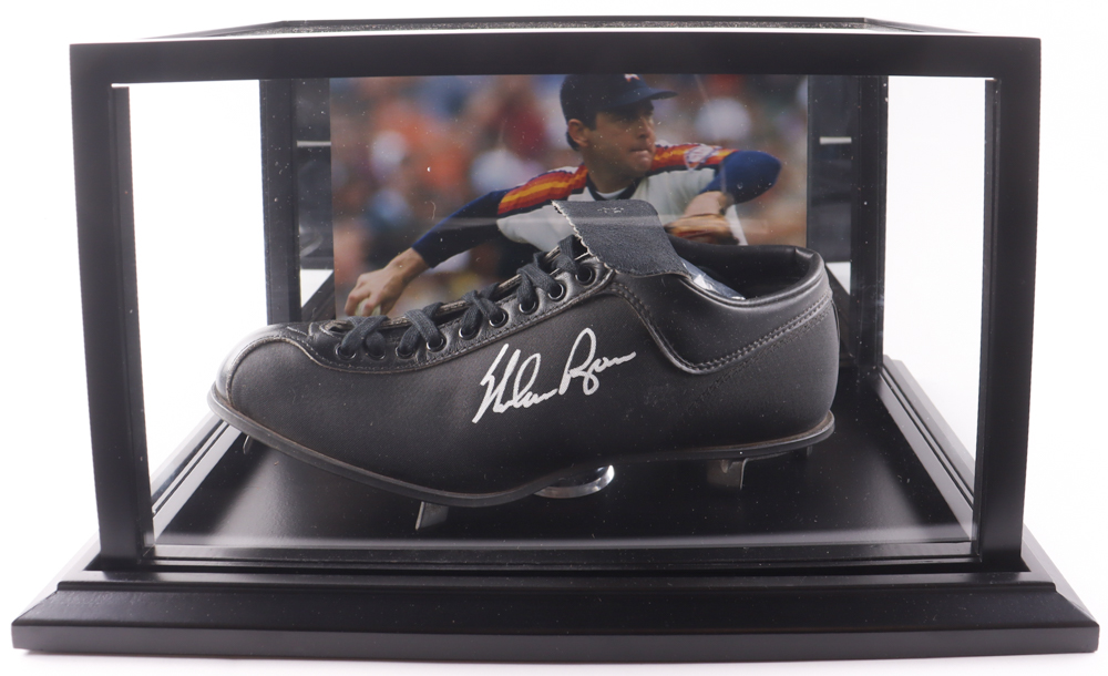 Nolan Ryan Signed Vintage Baseball Cleat With Photoback Display Case (PSA)