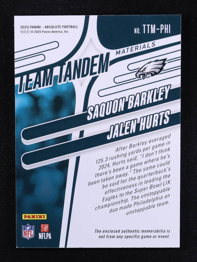 Saquon Barkley / Jalen Hurts 2025 Absolute Team Tandem Materials Gold #7 #67/99