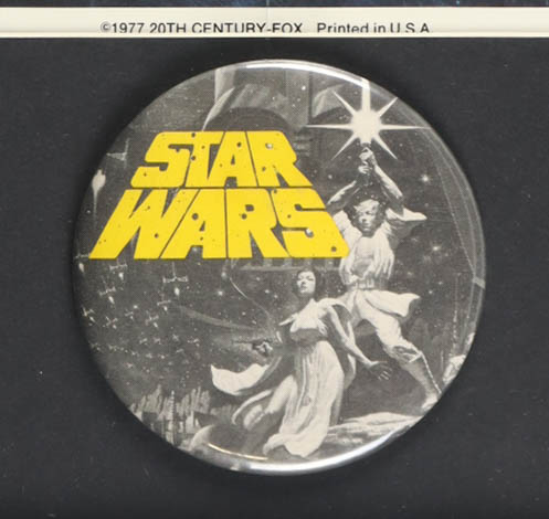 Custom frame measures approximately 27" x 36" in size and features a poster from the film "Star Wars" and includes a vintage "May The Force Be With You" lapel pin. Please note, the display is unsigned. Please see photos for more details regarding the item.
