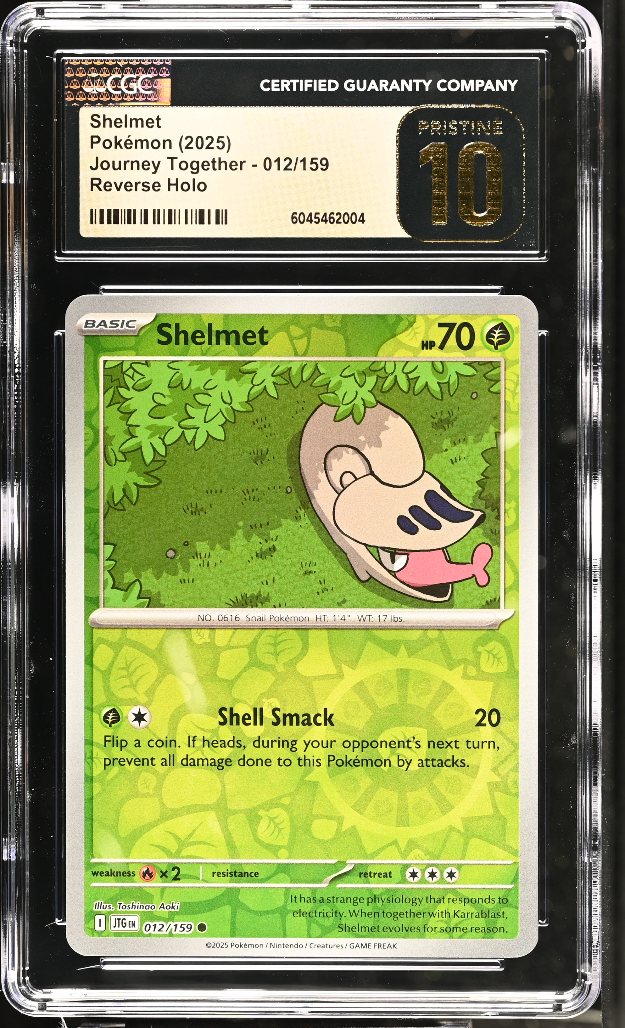 Shelmet 2025 Pokemon Journey Together Reverse Holo #012/159 (CGC PRISTINE 10 | Black Label)
