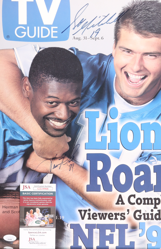 Herman Moore & Scott Mitchell Signed Lions Custom Framed Photo (JSA)