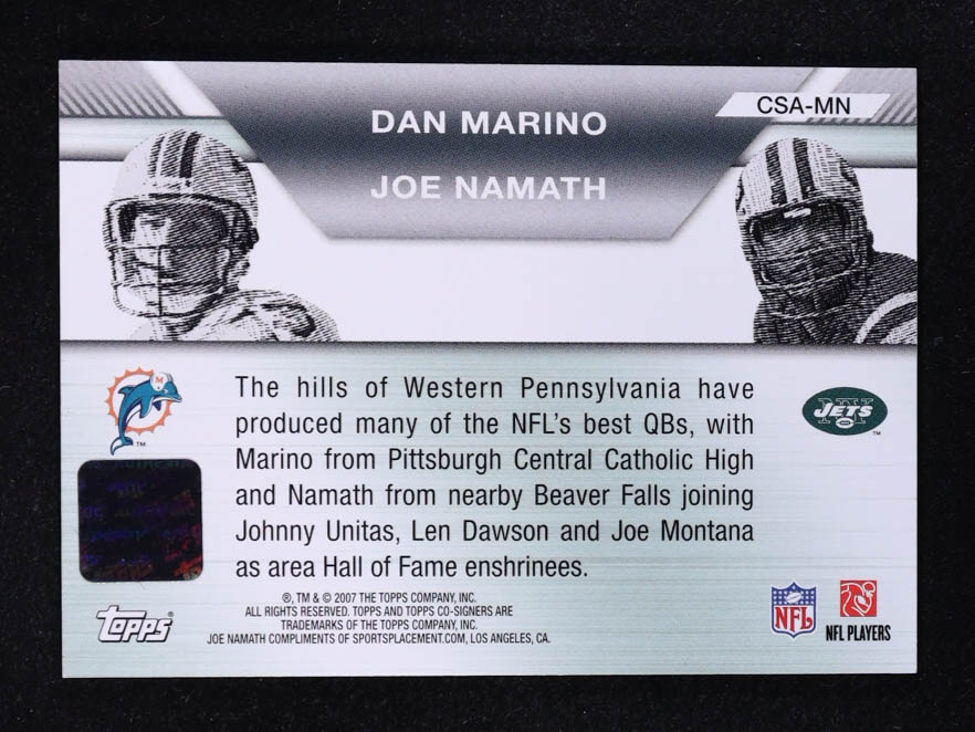 Dan Marino / Joe Namath 2007 Topps Co-Signers Co-Signer Autographs #MN