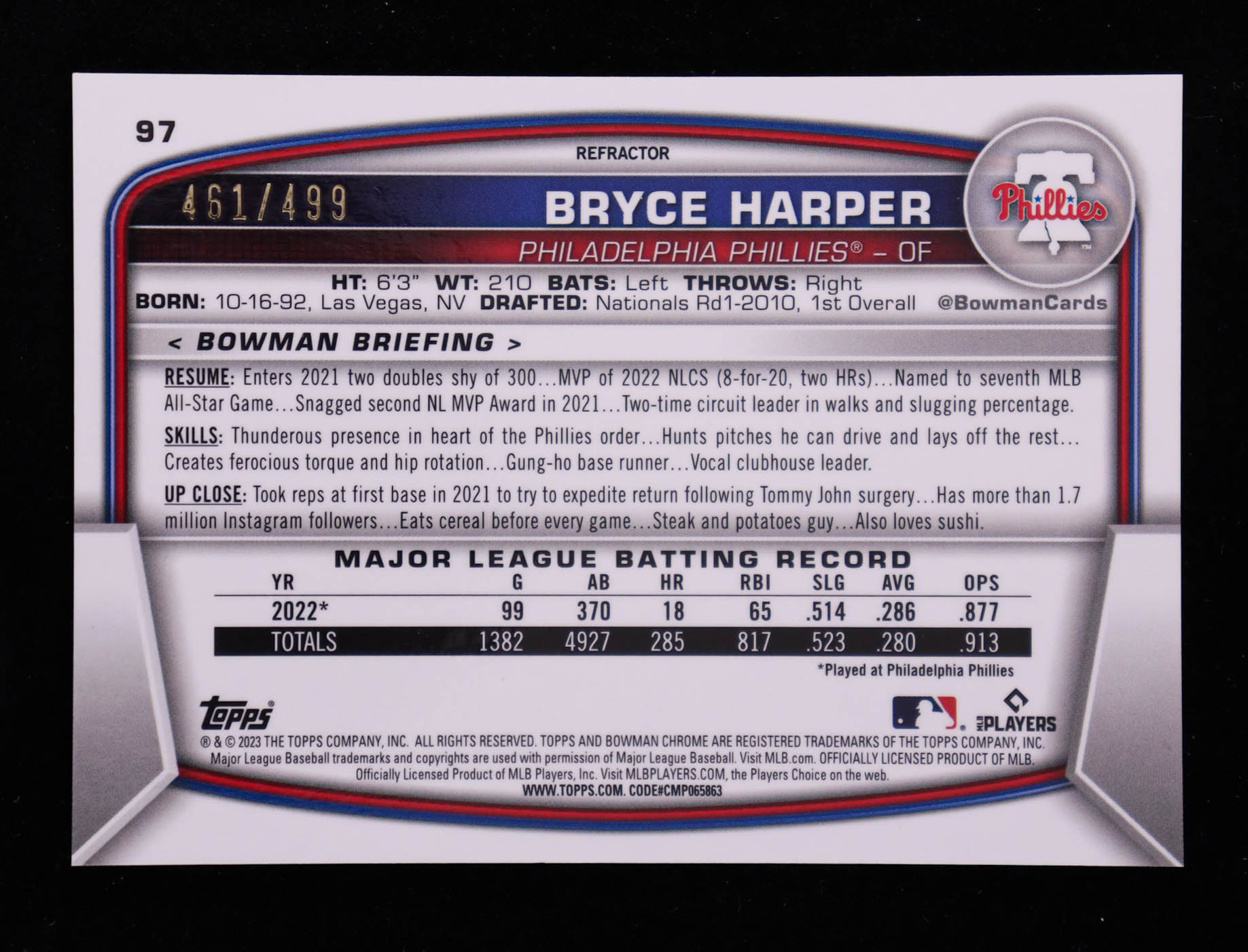 Bryce Harper 2023 Bowman Chrome Refractors #97 #461/499