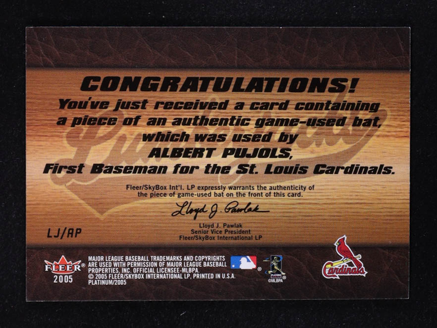 Albert Pujols 2005 Fleer Platinum Lumberjacks Bat Silver #AP