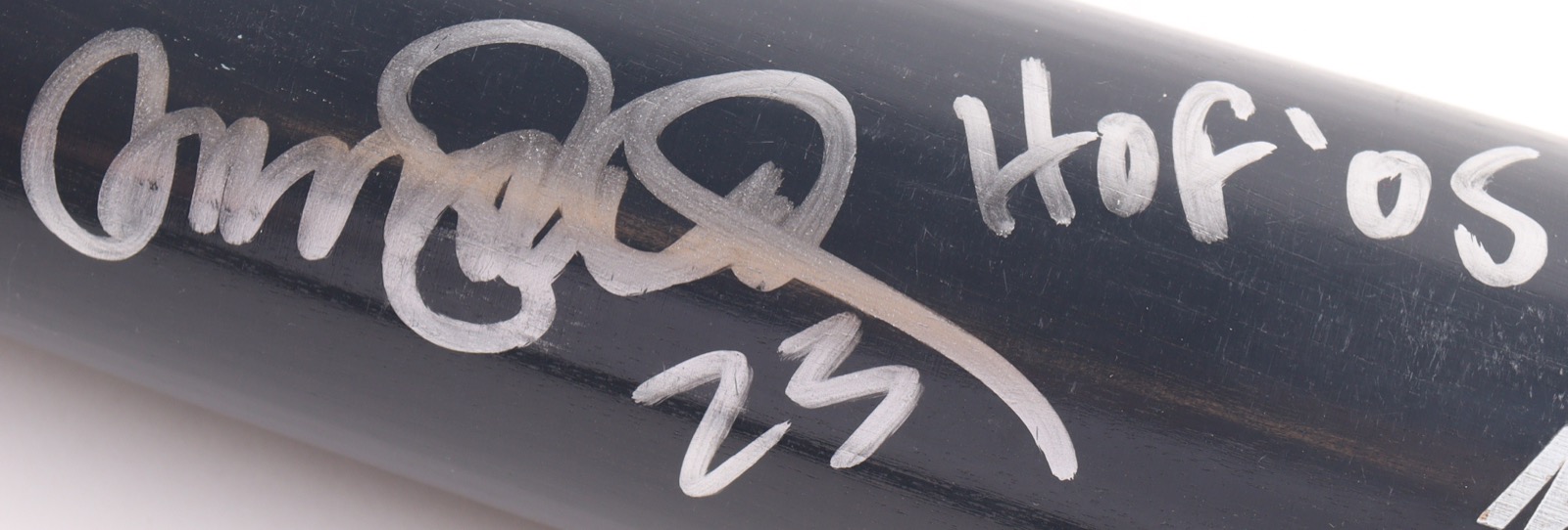 MAX model i13 baseball bat. Hand-signed and inscribed by Ryne Sandberg (D. 2025, Chicago Cubs, HOF).