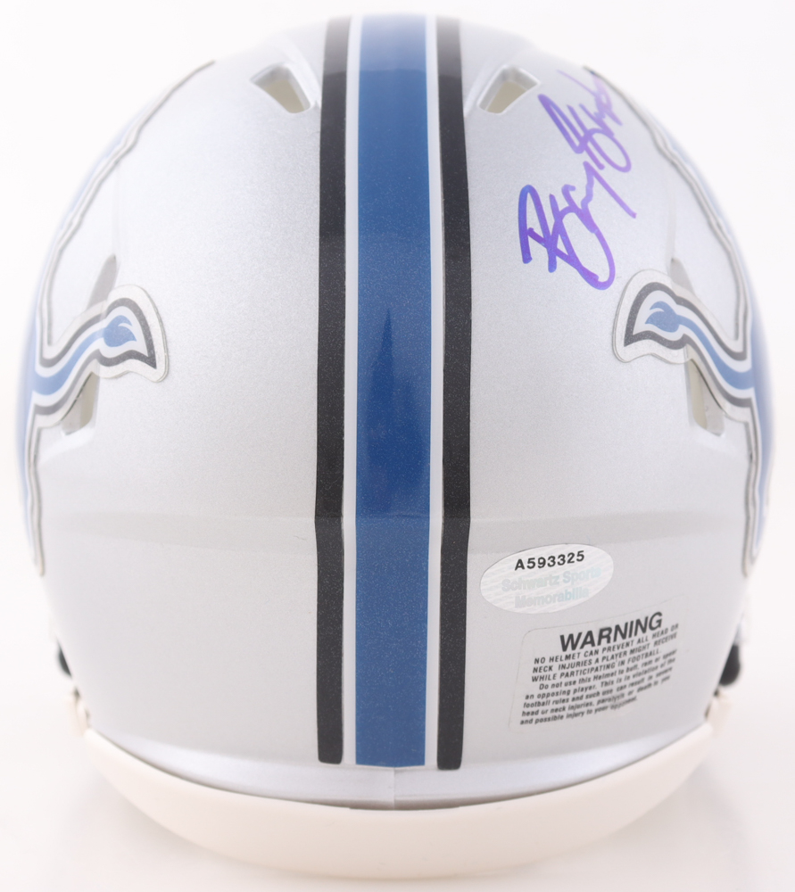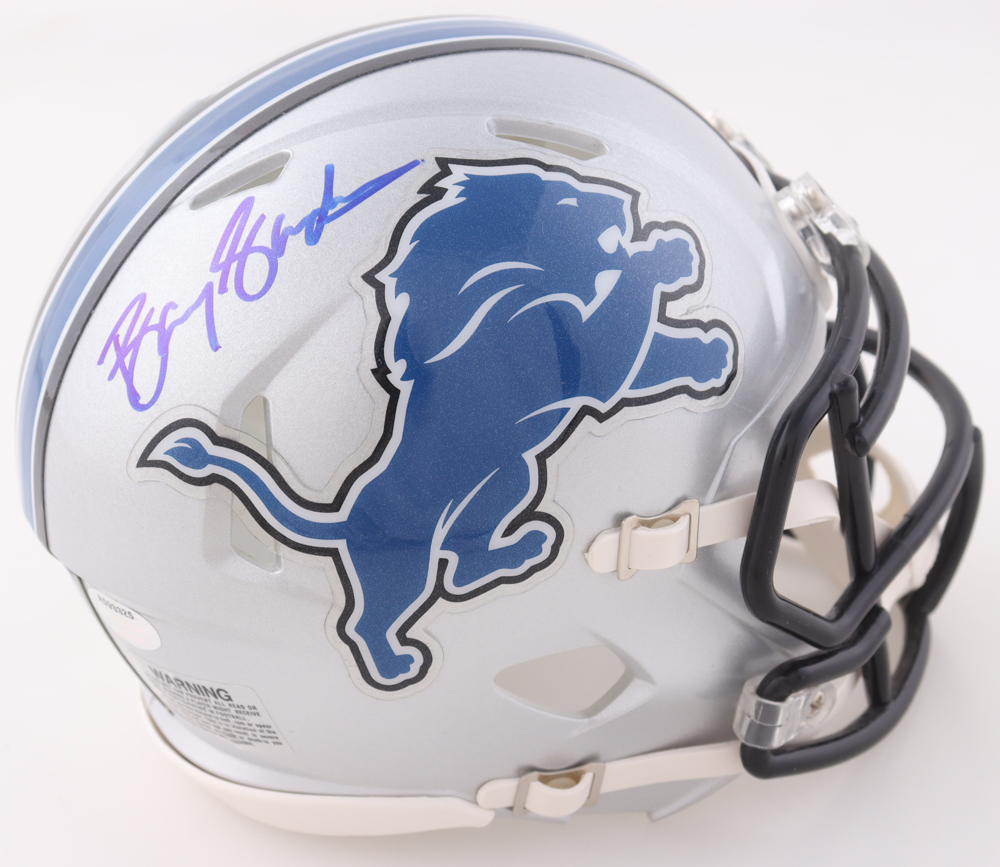 Riddell Detroit Lions Throwback Speed Mini Helmet. Hand-signed by Barry Sanders (HOF).