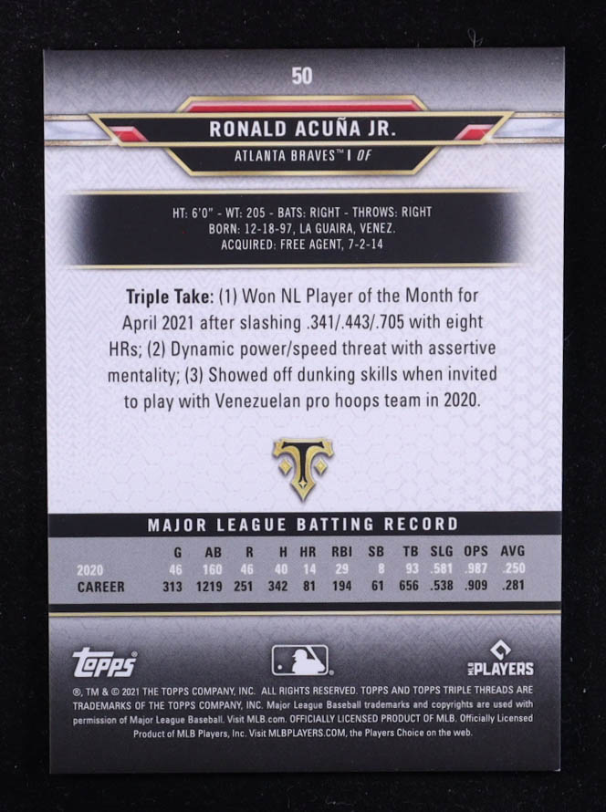 Ronald Acuna Jr. 2021 Topps Triple Threads Tourmaline #50 #006/125