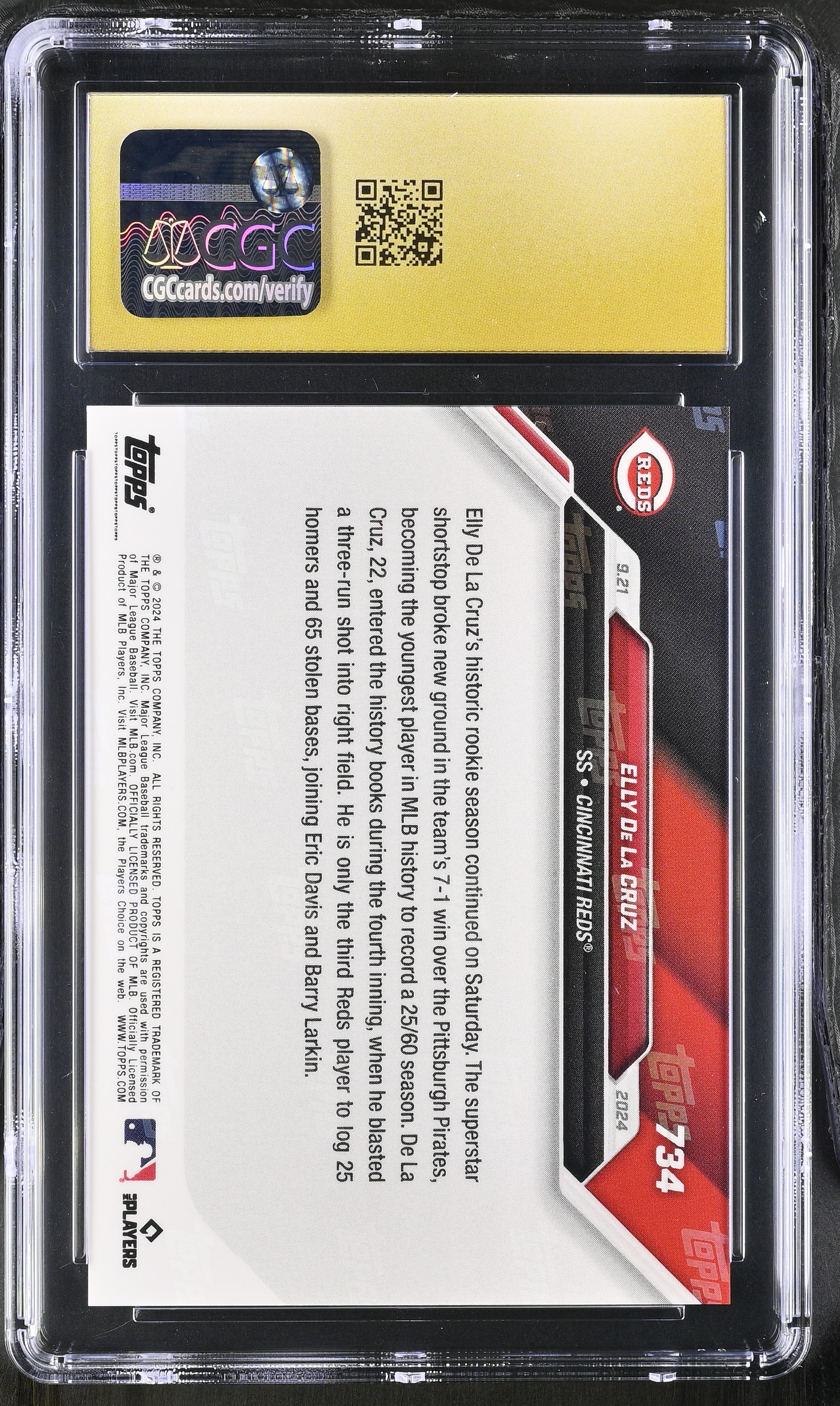 Elly De La Cruz 2024 Topps Now #734 RC (CGC PRISTINE 10 | Black Label)