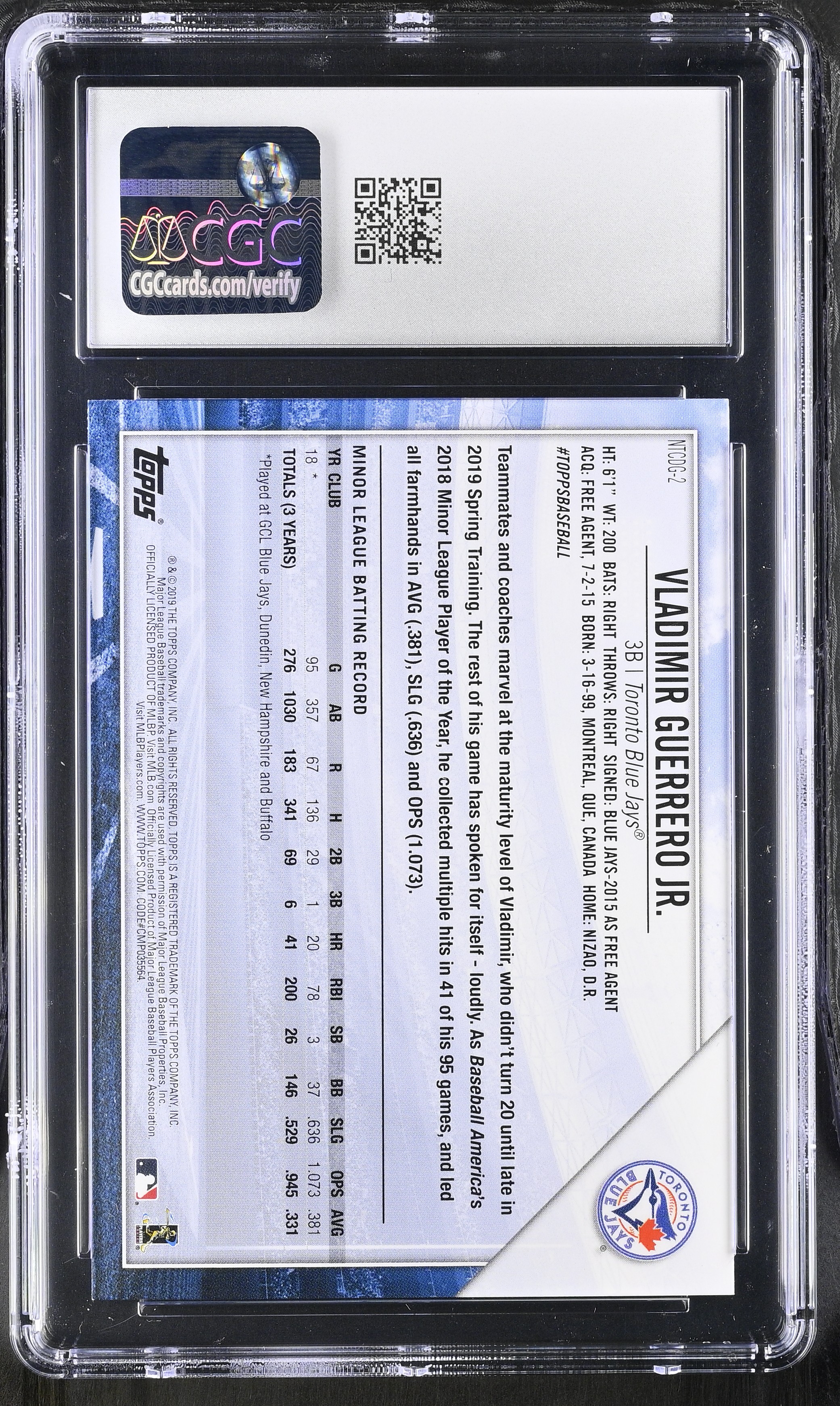 Vladimir Guerrero Jr. 2019 Topps National Baseball Card Day #NTCDG-2 RC (CGC 10)