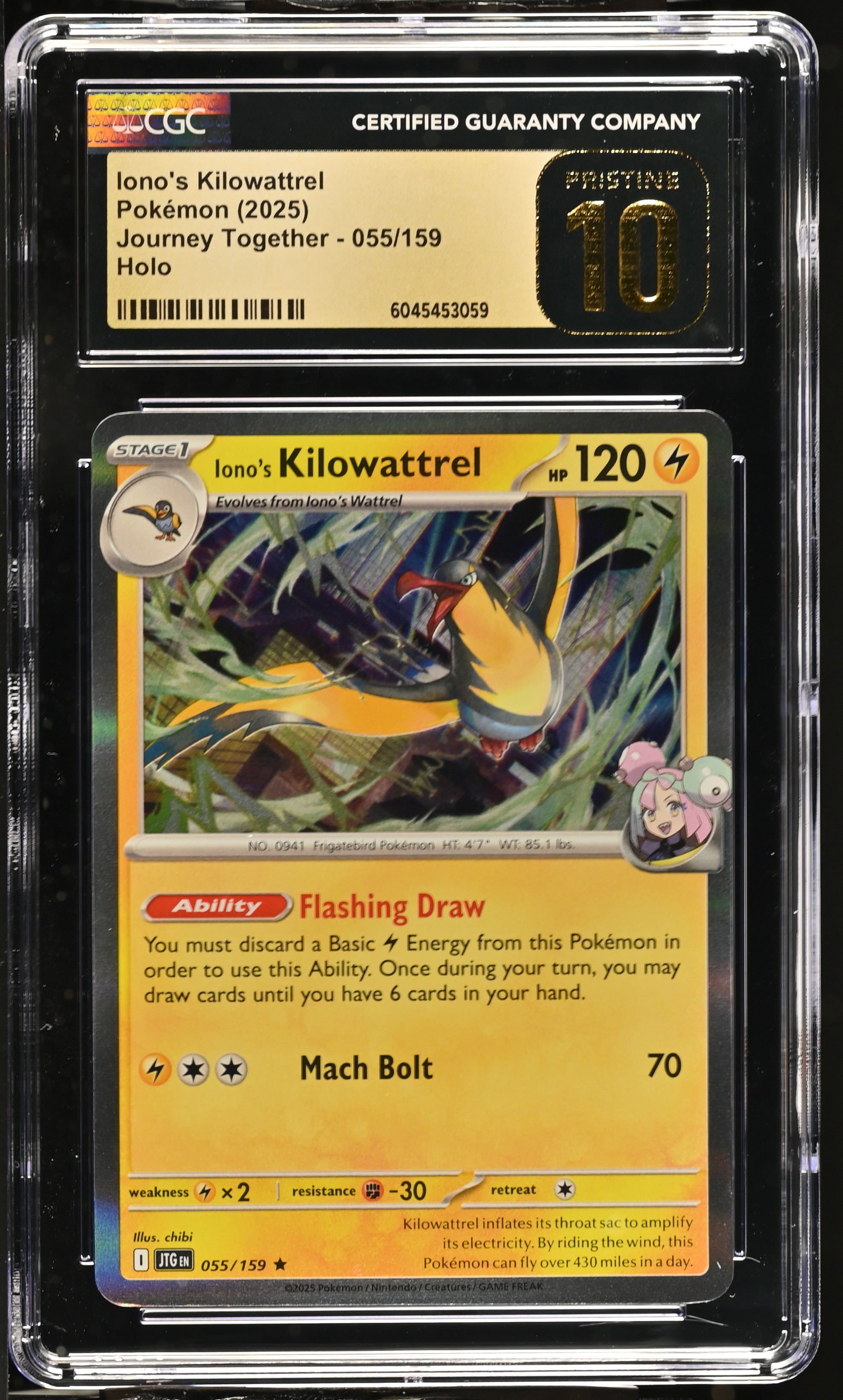 Iono's Kilowattrel 2025 Pokemon Journey Together Holo #055/159 (CGC PRISTINE 10 | Black Label)