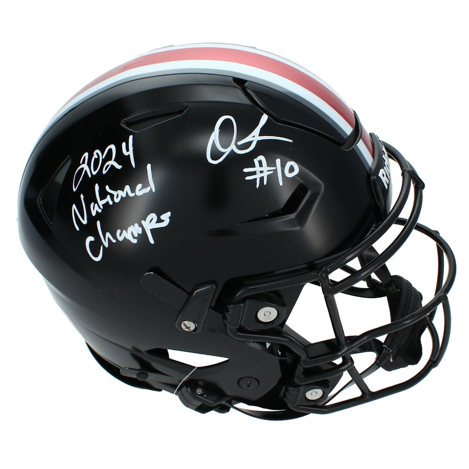 Quinshon Judkins Signed Ohio State Buckeyes Full-Size Authentic On-Field Speedflex Helmet Inscribed "24 National Champs" (Beckett)