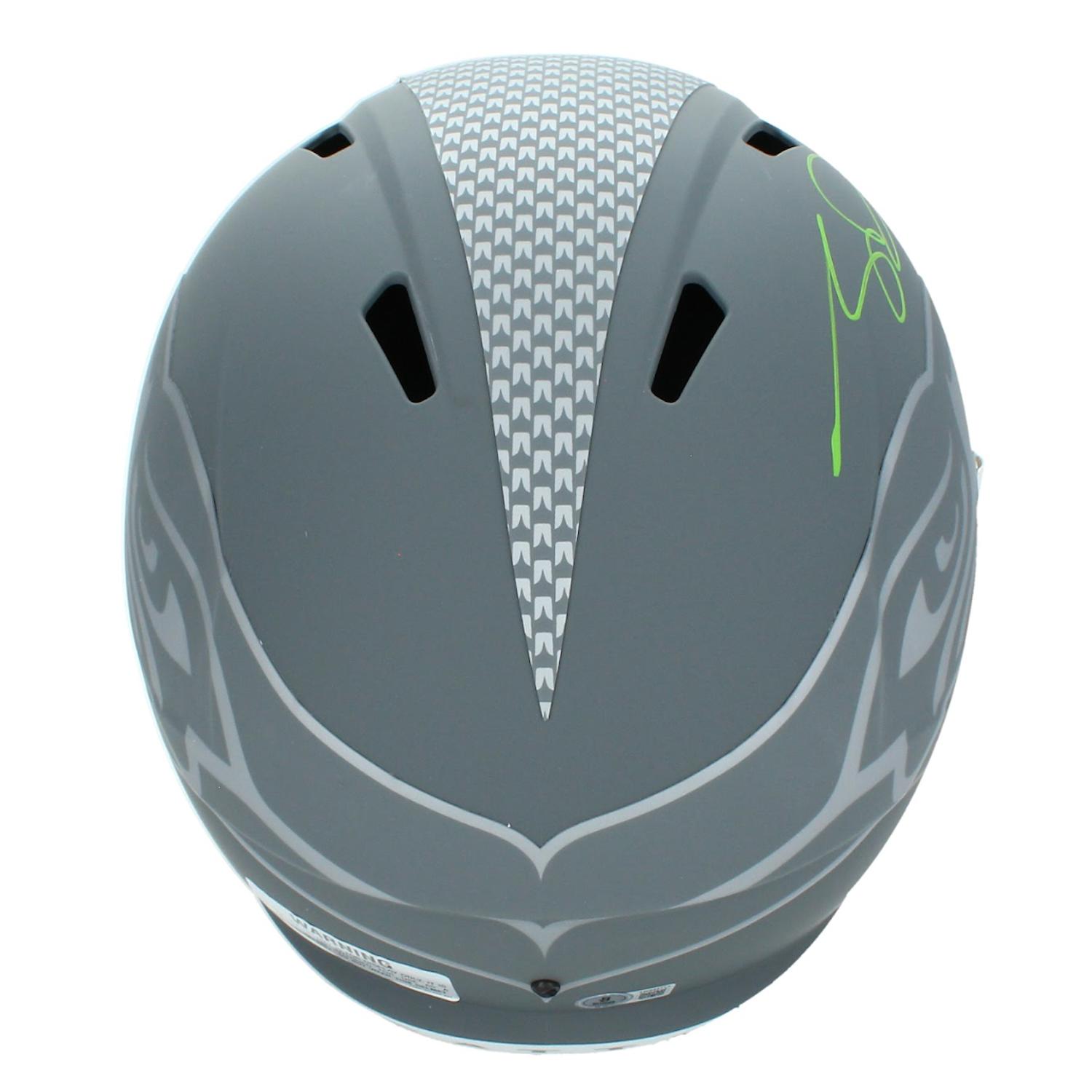 Riddell Seattle Seahawks full-size slate alternate speed replica helmet has been hand-signed by Sam Darnold.