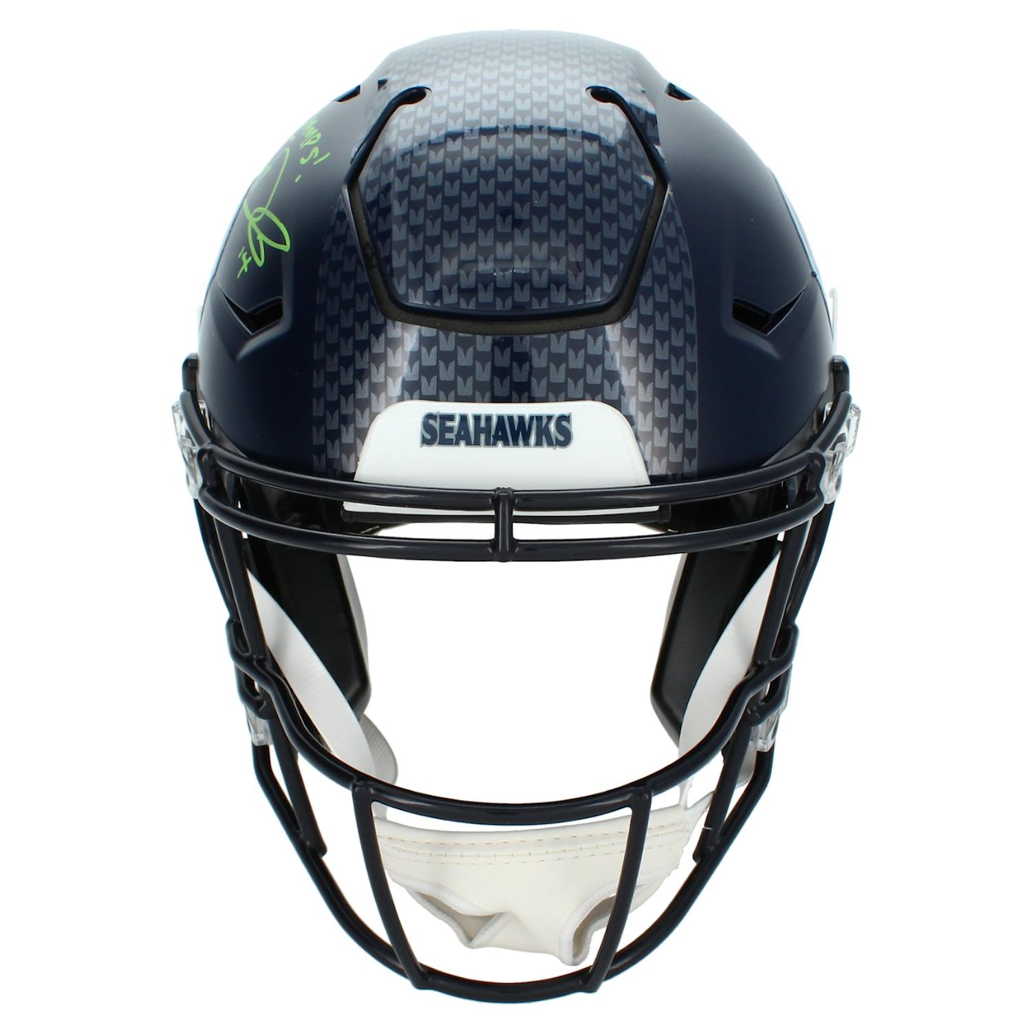 Riddell Seattle Seahawks full-size authentic on-field speedflex helmet has been hand-signed and inscribed by Sam Darnold.