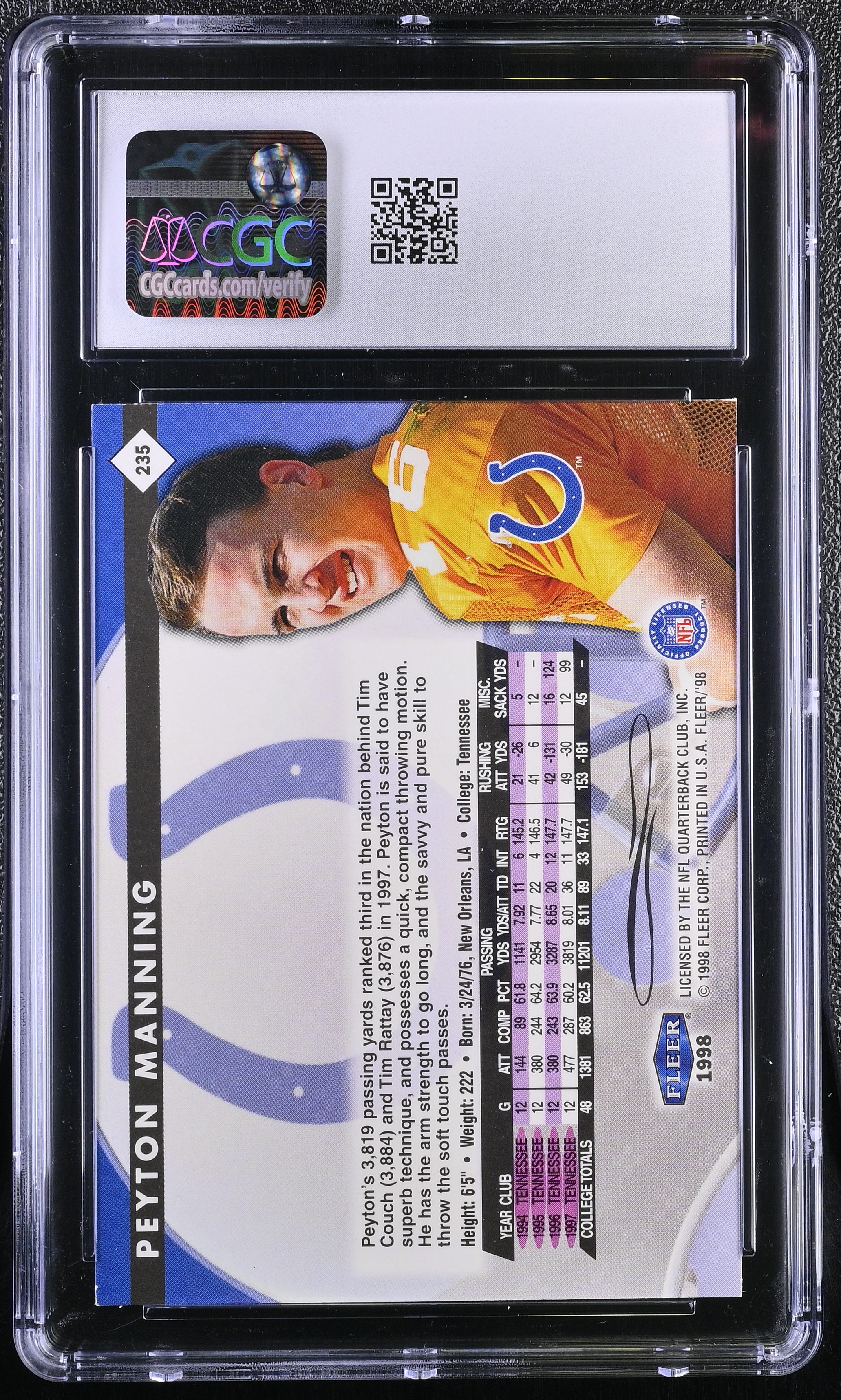 Peyton Manning 1998 Fleer Tradition #235 RC (CGC 7.5)
