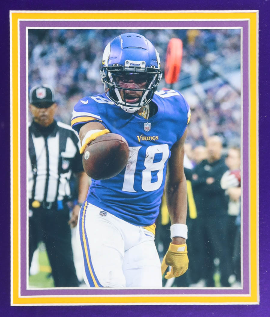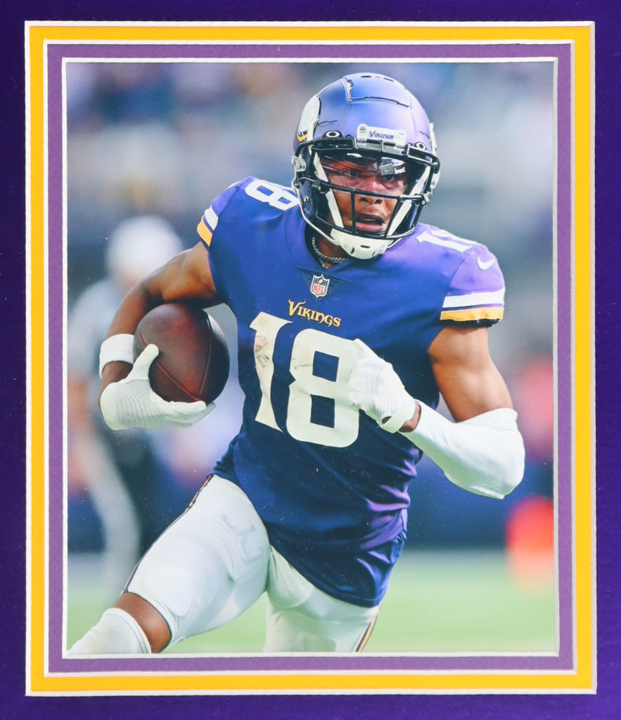 Justin Jefferson Signed Custom Framed Vikings Nike Authentic Jersey Display With (2) 2020 Vikings Rookie Cards (PSA 10) (Fanatics)