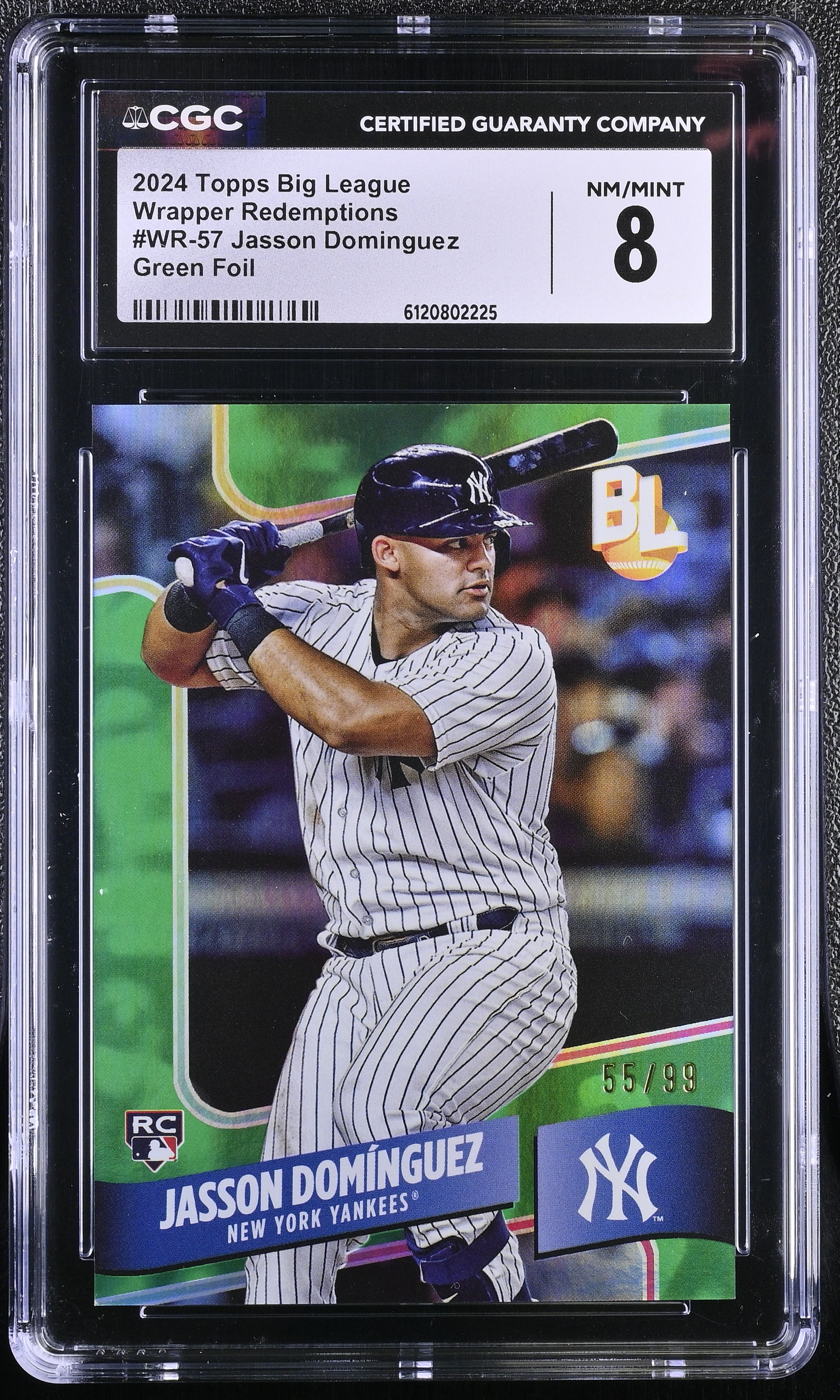 Jasson Dominguez 2024 Topps Big League Wrapper Redemptions Green Foil #WR57 #55/99 RC (CGC 8)