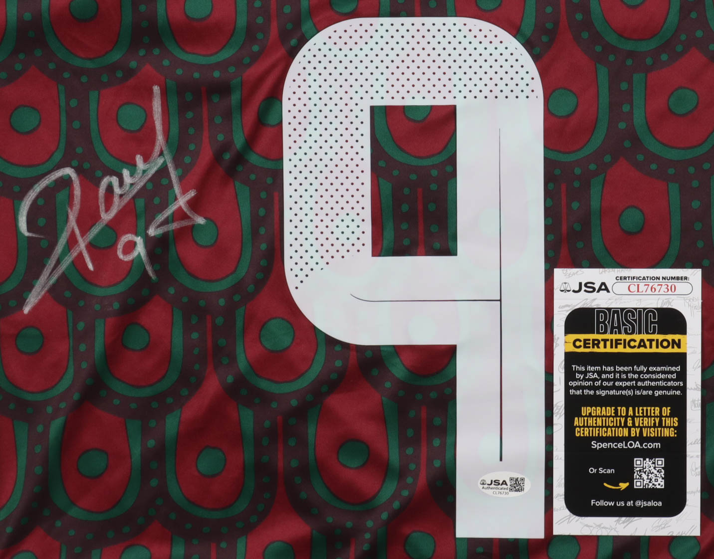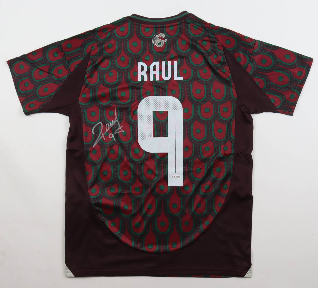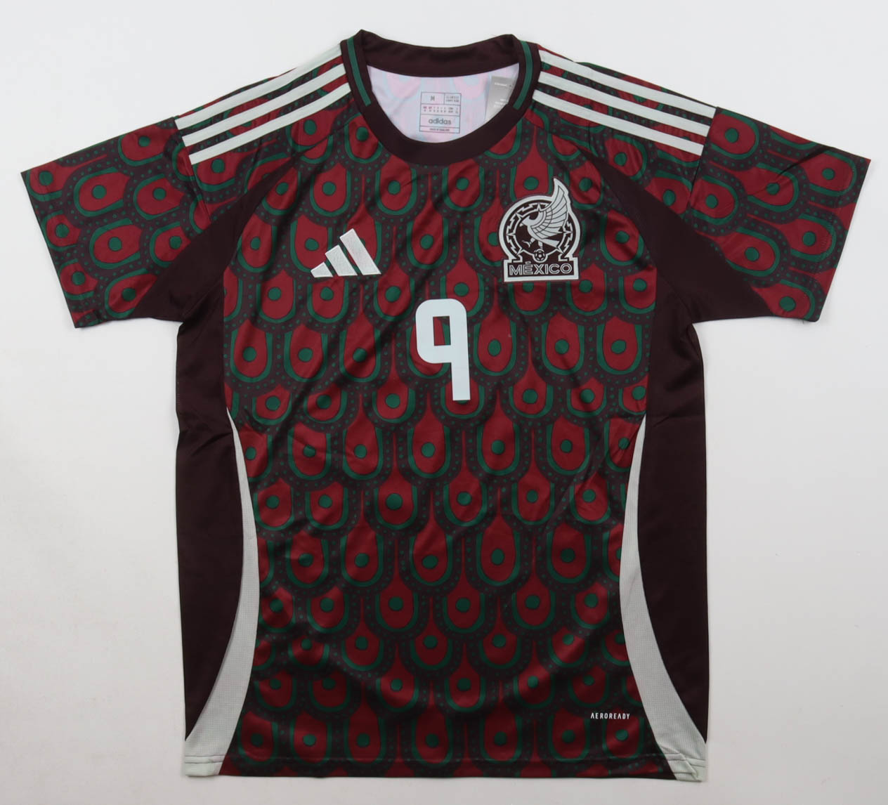 Adidas jersey with everything pressed on, size M. Hand-signed by Raul Jimenez (Mexico National Football Team).