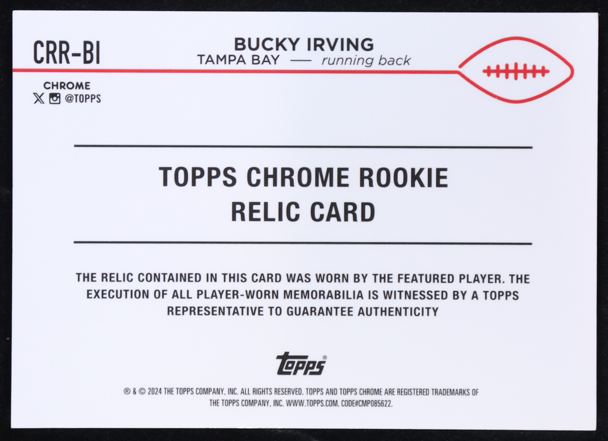 Bucky Irving 2024 Topps Chrome Rookie Relics Green #CRRBI RC #82/99