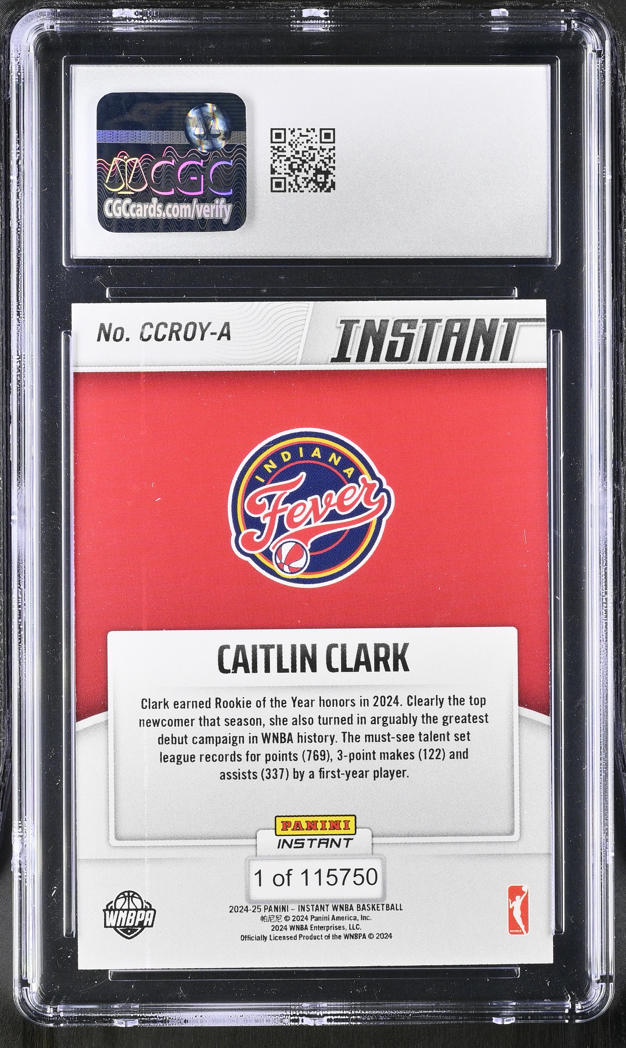 Caitlin Clark 2024-25 Panini Instant WNBA Rookie Of The Year #CCROY-A RC (CGC 8.5)