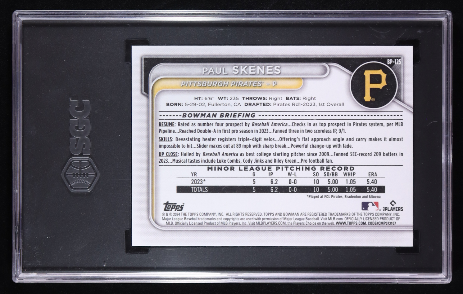 Paul Skenes 2024 Bowman Prospect #BP-125 RC (SGC 10)
