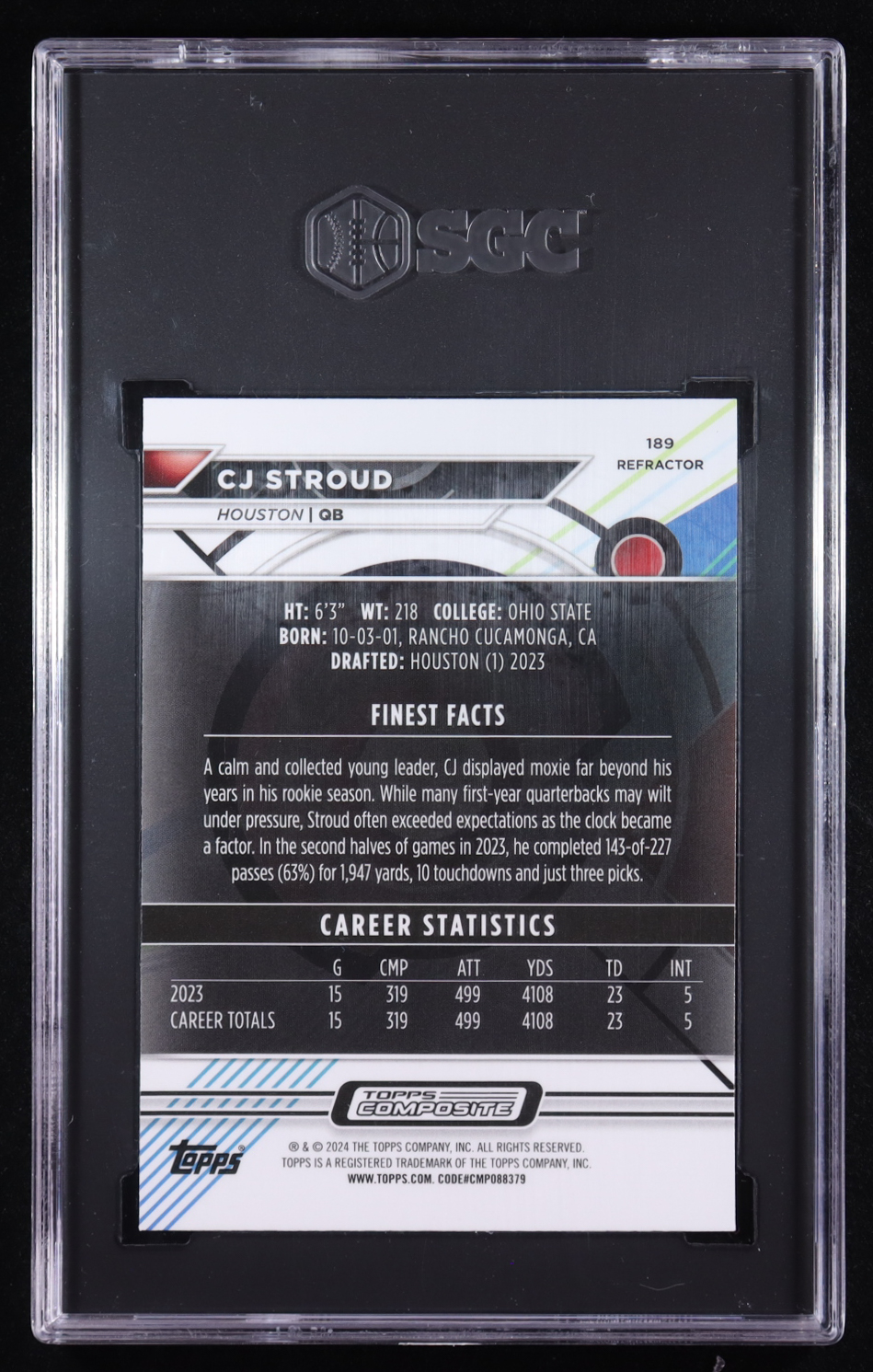 CJ Stroud 2023 Topps Finest Composite Refractor #189 RC (SGC 10)