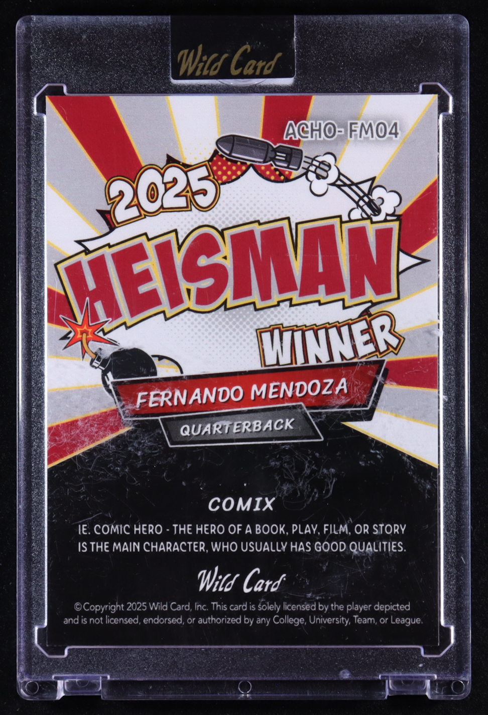 Fernando Mendoza 2025 Wild Card Comix 2025 Heisman Winner Red and White Shimmer #ACHOFM04 RC #2/4