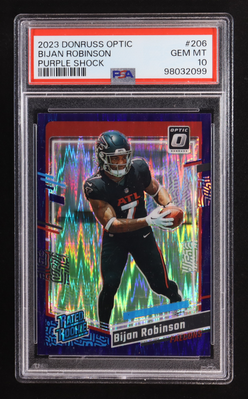 Bijan Robinson 2023 Donruss Optic Purple Shock #206 RC (PSA 10)