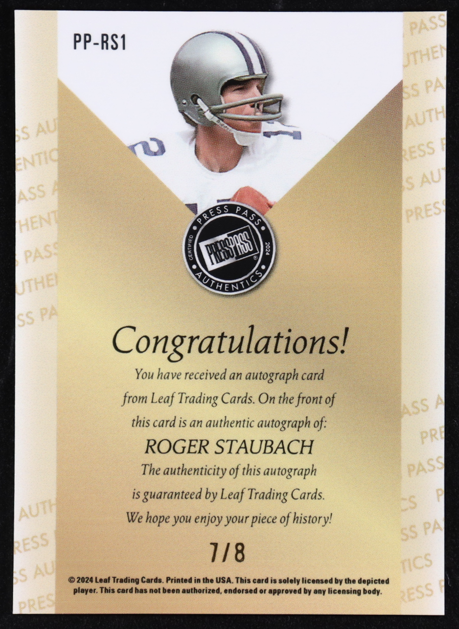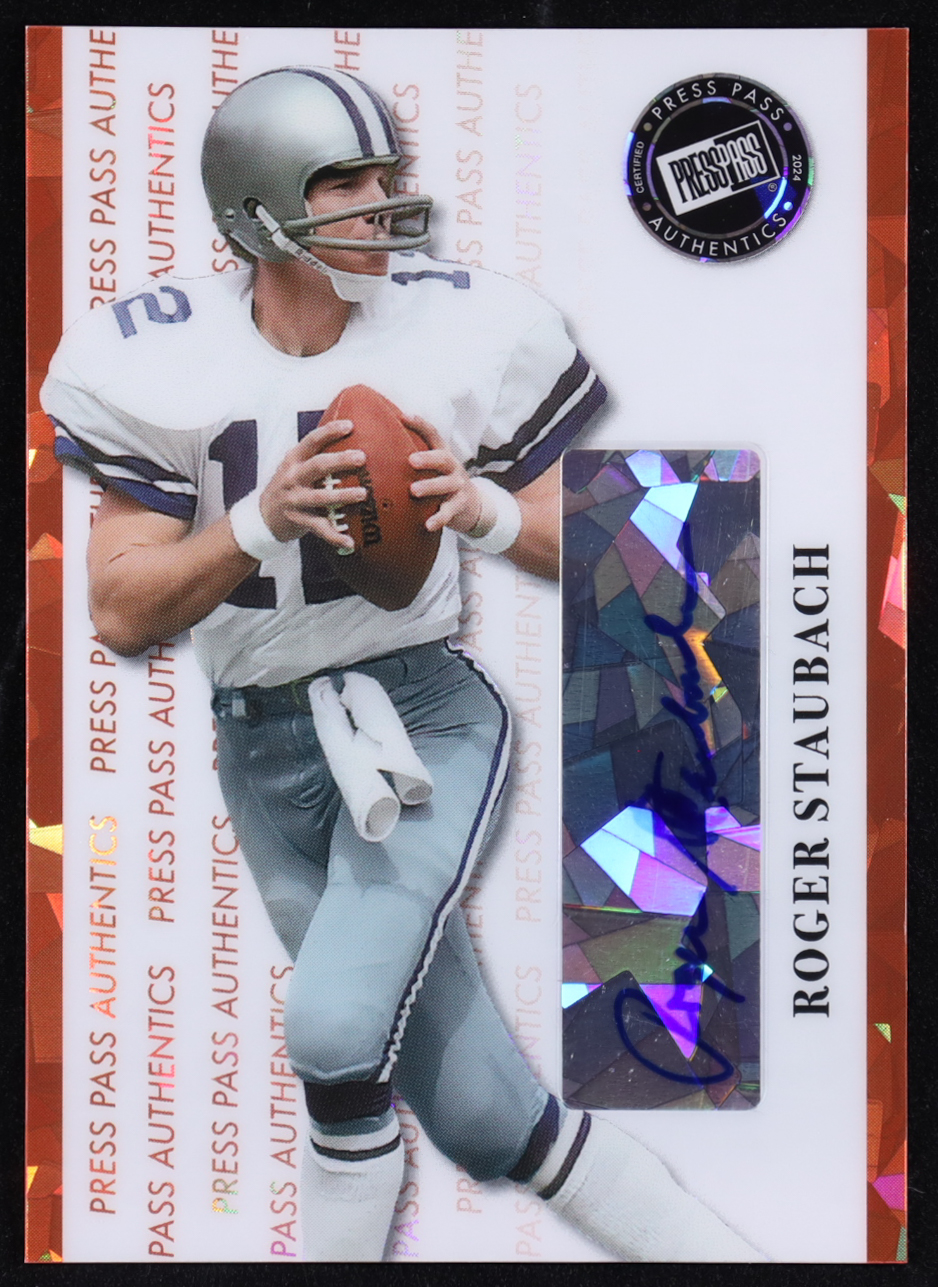 Roger Staubach 2024 Leaf Collective Press Pass Authentics Autographs Crystal Orange #PPRS1 #7/8