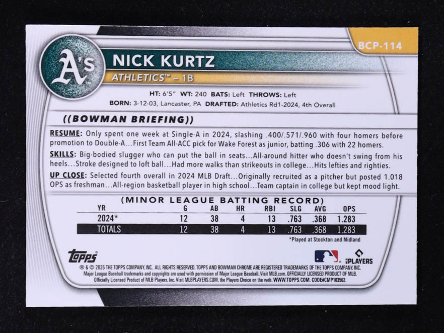 Nick Kurtz 2025 Bowman Chrome Mega Box Prospects #BCP114 RC