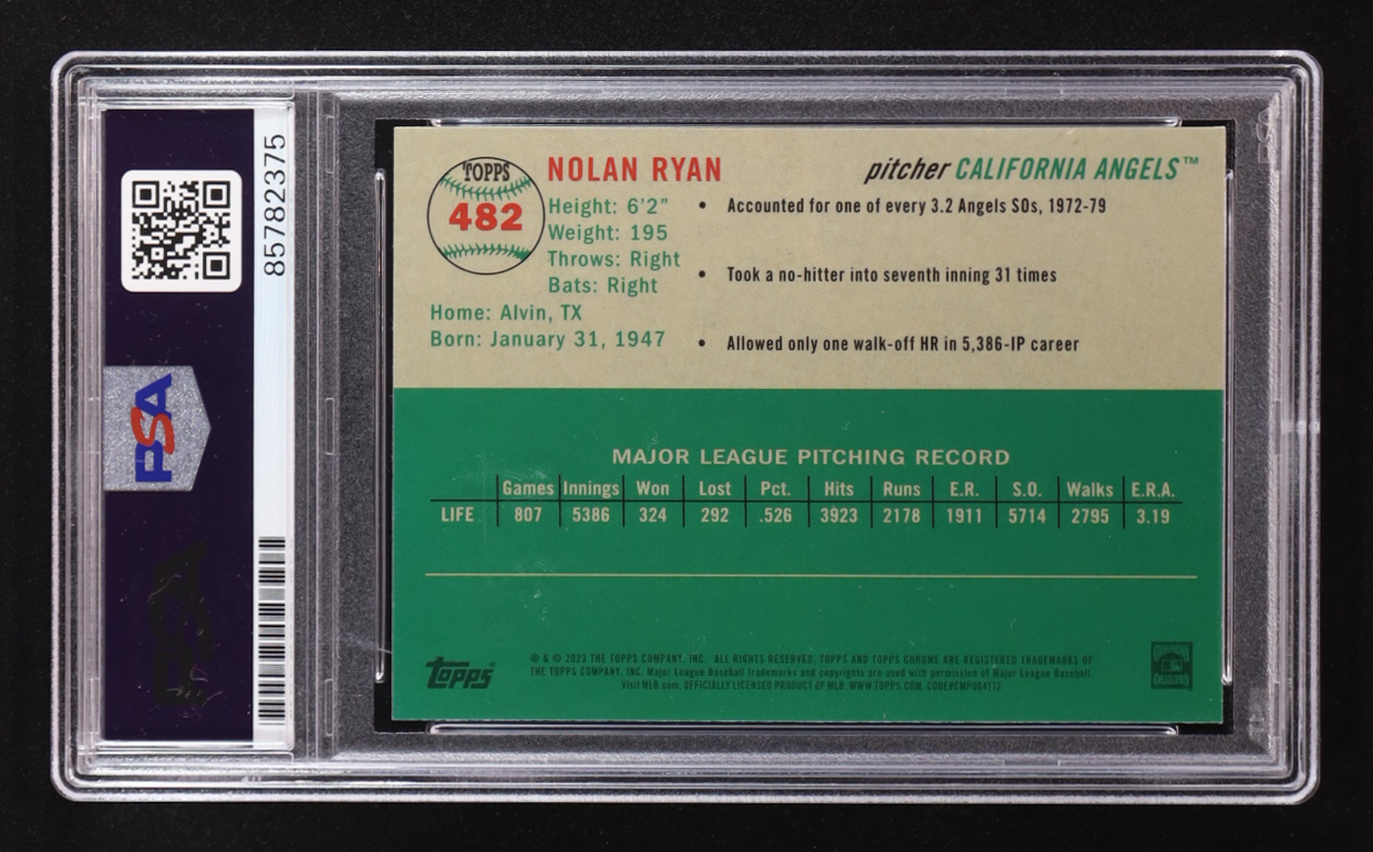Nolan Ryan Signed 2023 Topps Chrome Platinum Anniversary Prism Refractors #482 (PSA | Autograph Graded Authentic)