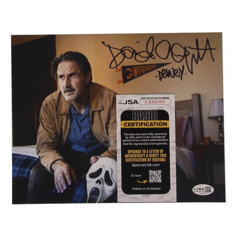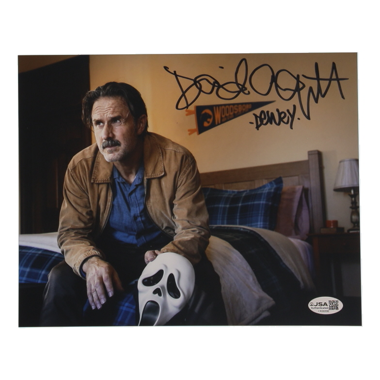 Photo measure 8" x 10" in size and has been hand-signed and inscribed by David Arquette (Dewey Riley).
