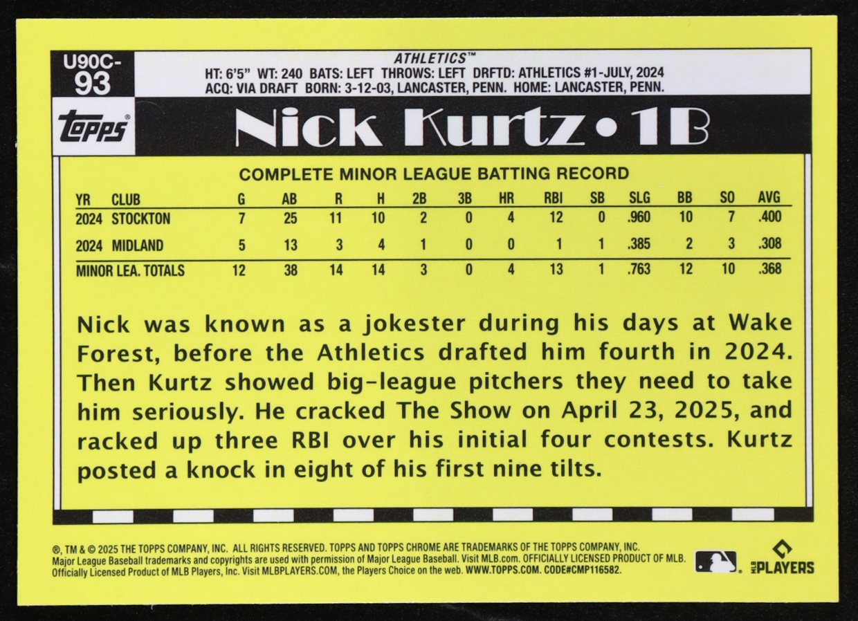 Nick Kurtz 2025 Topps Update '90 Topps Silver Pack Chrome #U90C93 RC