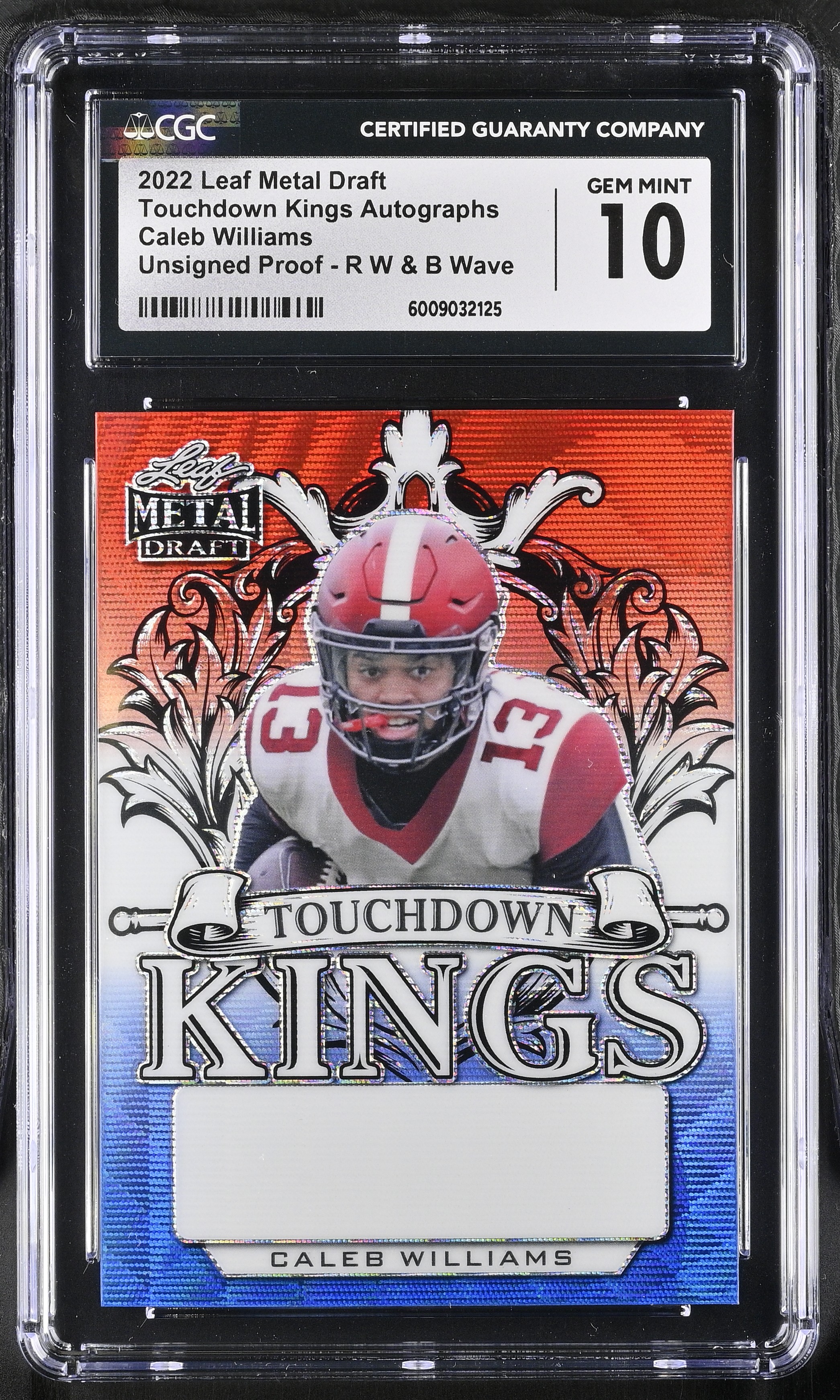 Caleb Williams 2022 Leaf Metal Draft Touchdown Kings Autographs Unsigned Proof - R W & B Wave RC (CGC 10)