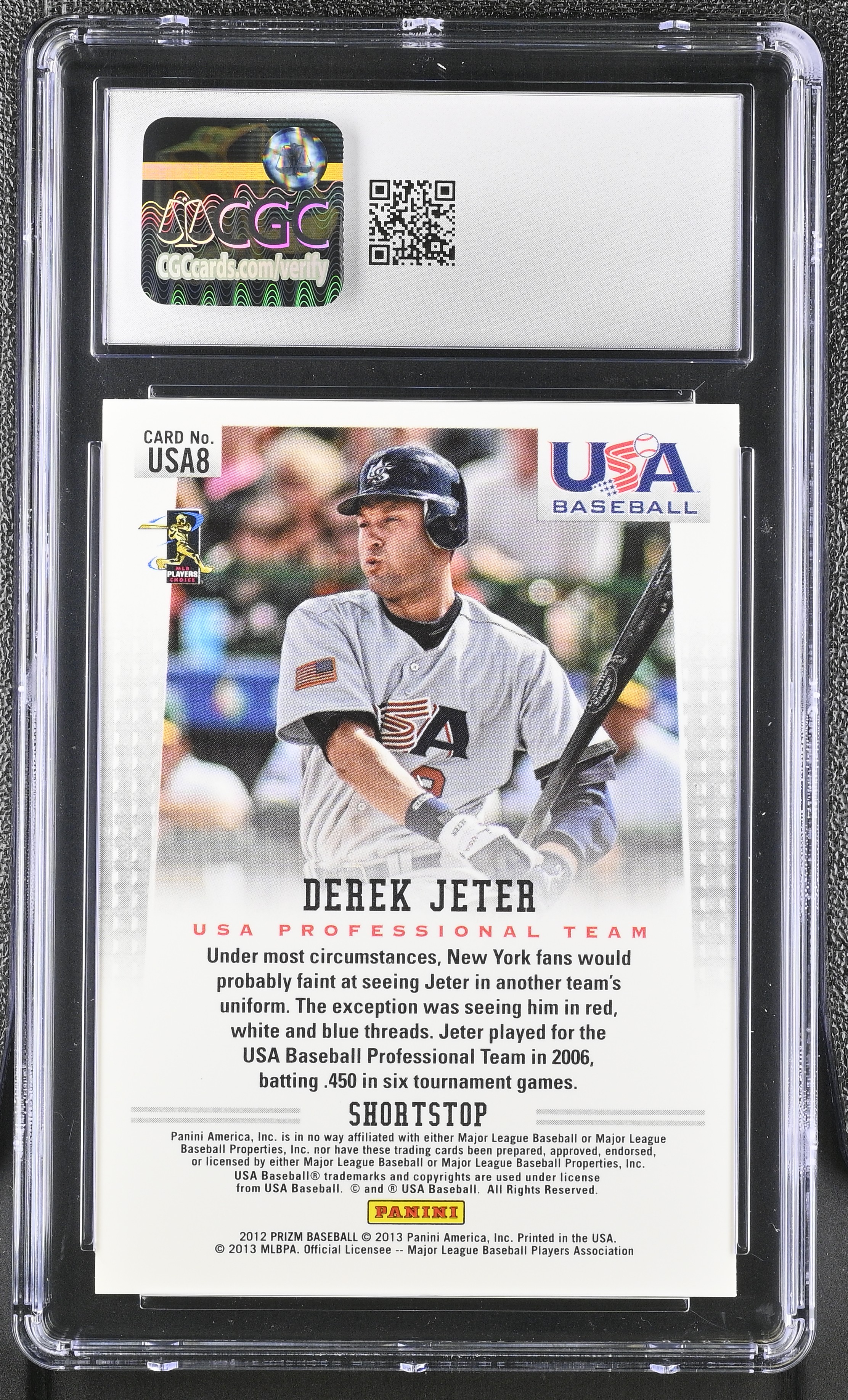 Derek Jeter 2012 Panini Prizm USA Baseball Prizms #USA8 (CGC 8)
