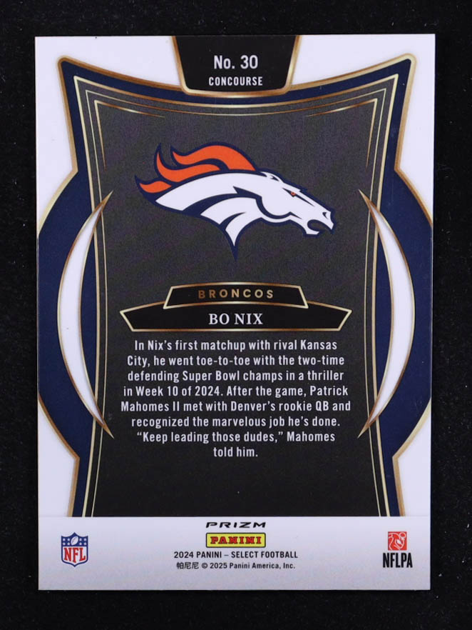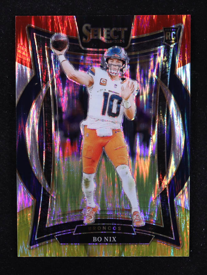 Bo Nix 2024 Select Prizm Red and Yellow Shock #30 RC
