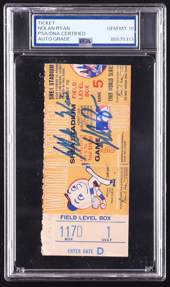 1969 Original World Series Game ticket has been hand-signed and inscribed by Nolan Ryan (New York Mets, HOF) and graded (PSA Auto Gem MT 10). Please see photos for details regarding the item.