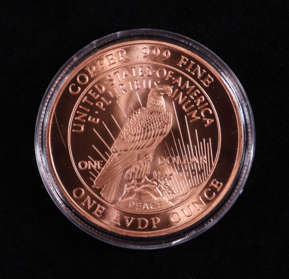 1921 Peace Dollar - 1 Ounce .999 Fine Copper Bullion Round