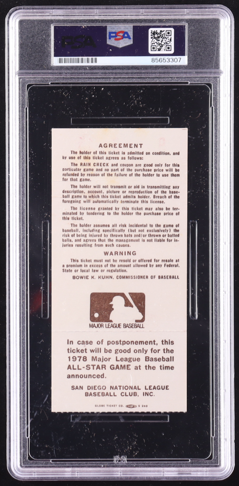 1978 Original All Star Game ticket has been hand-signed and inscribed by Nolan Ryan (New York Mets, HOF) and graded (PSA Auto Gem MT 10). Please see photos for details regarding the item.