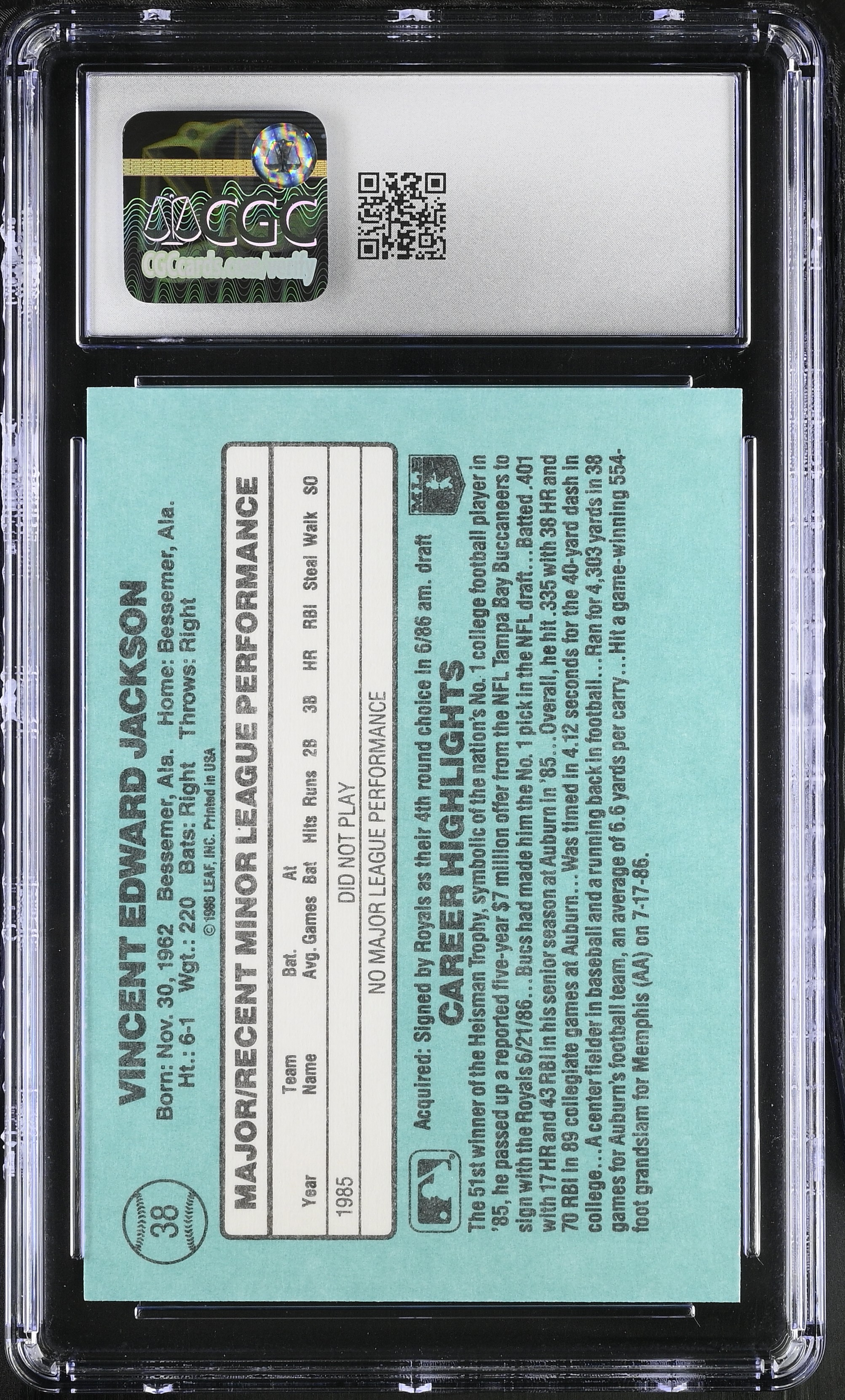 Bo Jackson 1986 Donruss Rookies #38 XRC RC (CGC 8)