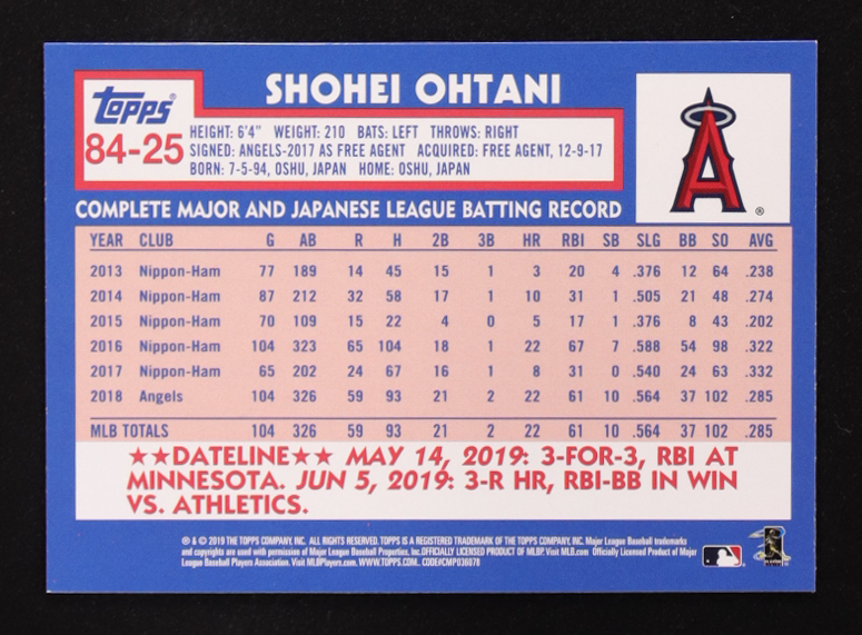 Shohei Ohtani 2019 Topps Update '84 Topps #8425