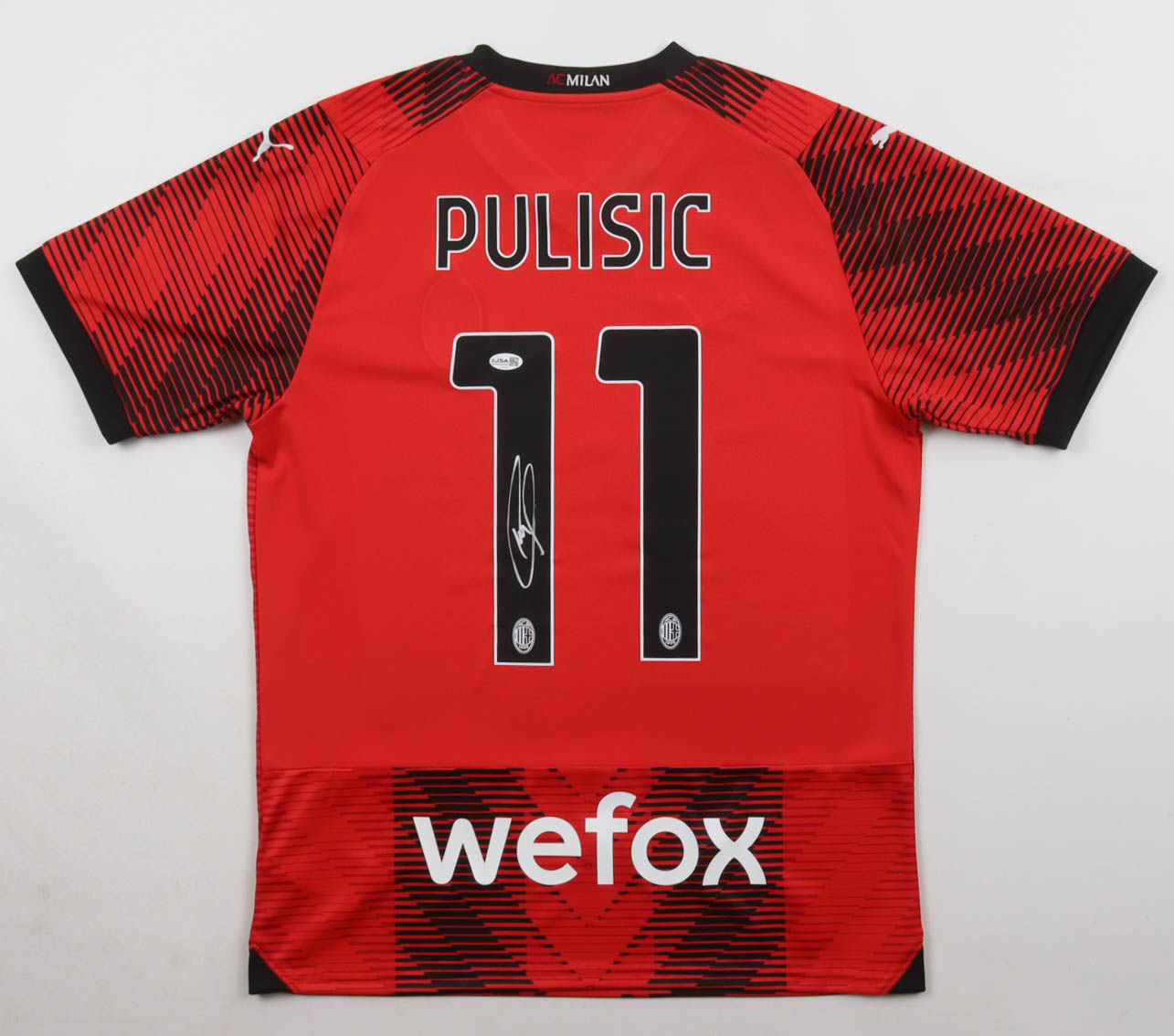 Puma jersey. Everything is pressed on, size M. Hand-signed by Christian Pulisic (AC Milan).