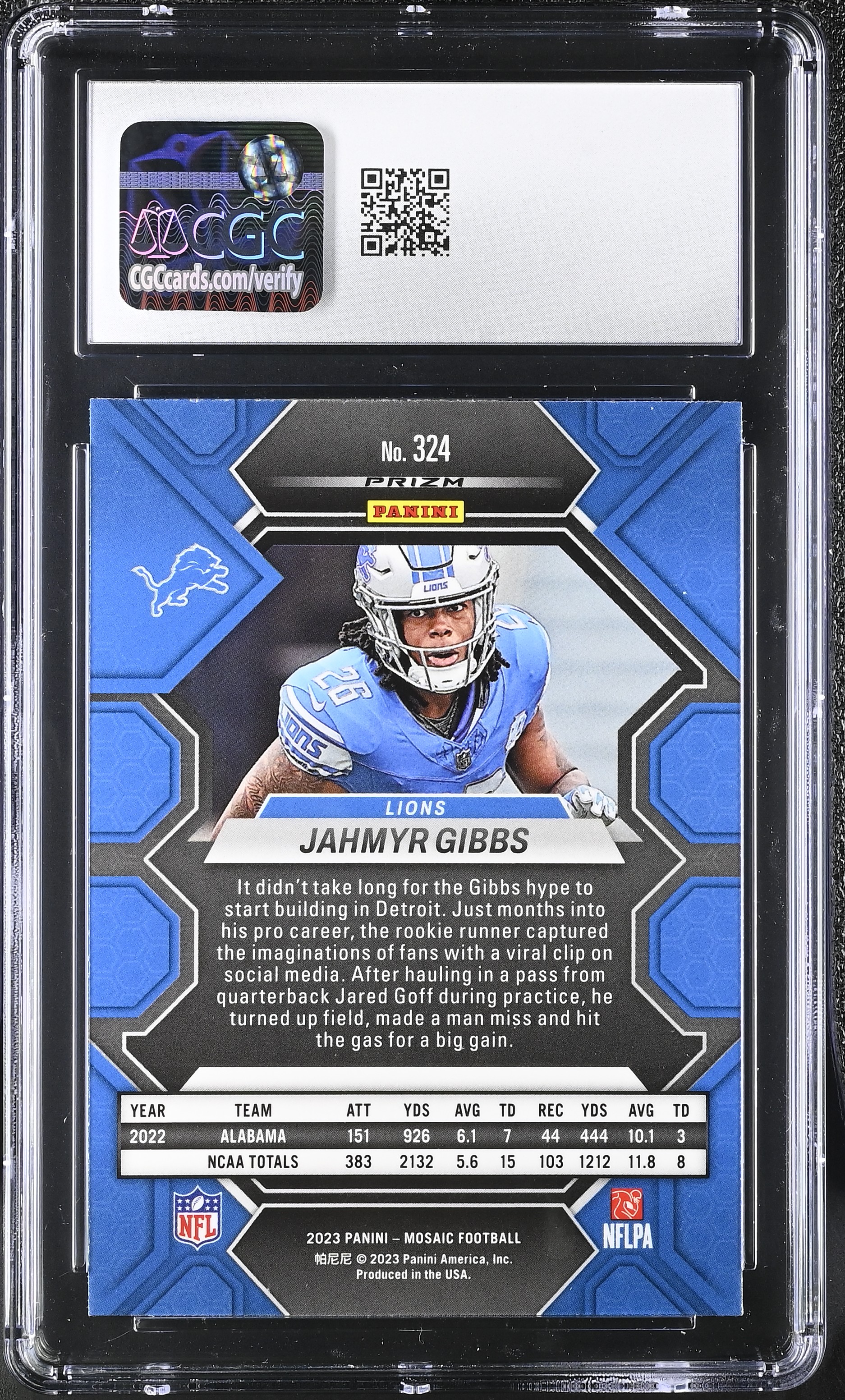 Jahmyr Gibbs 2023 Panini Mosaic Mosaic Green #324 RC (CGC 8)
