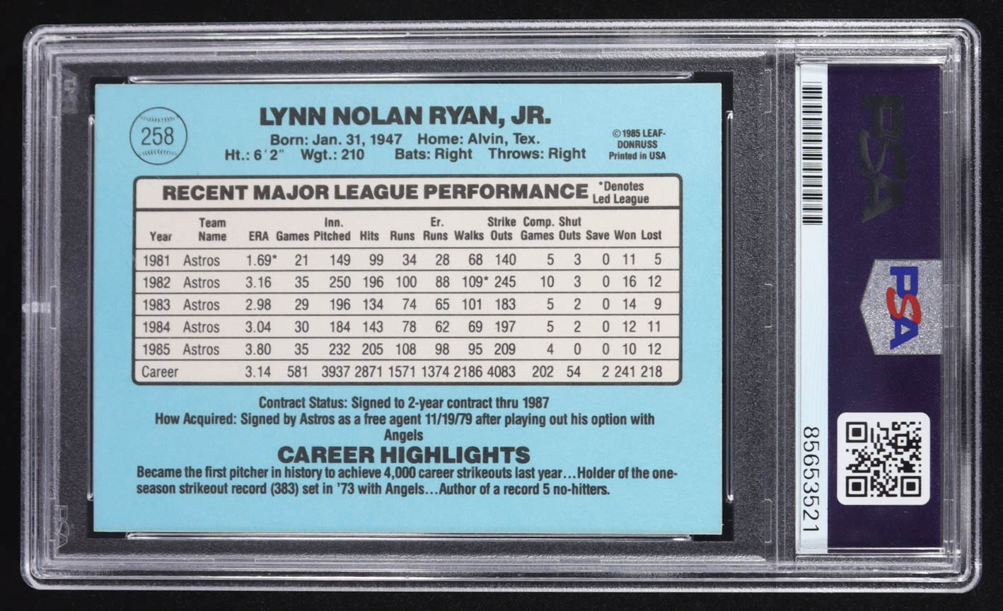 Nolan Ryan Signed 1986 Donruss #258 (PSA | Auto Grade 10)