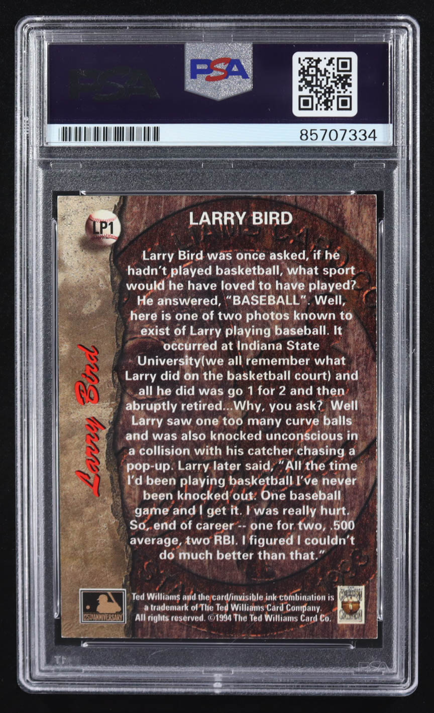 Larry Bird Signed 1994 Ted Williams Red #LP1B (PSA | Auto Grade 10)