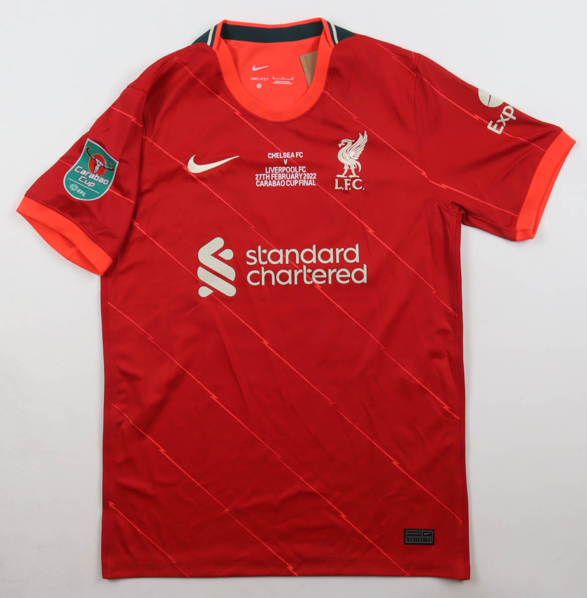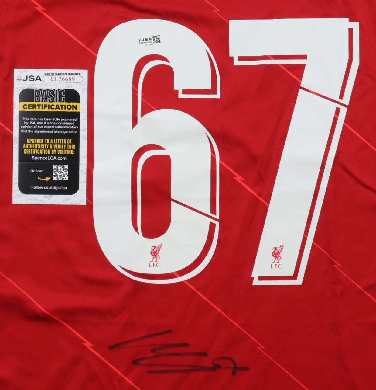 Nike jersey with everything pressed on, size M. Hand-signed by Harvey Elliott (Liverpool F.C.).