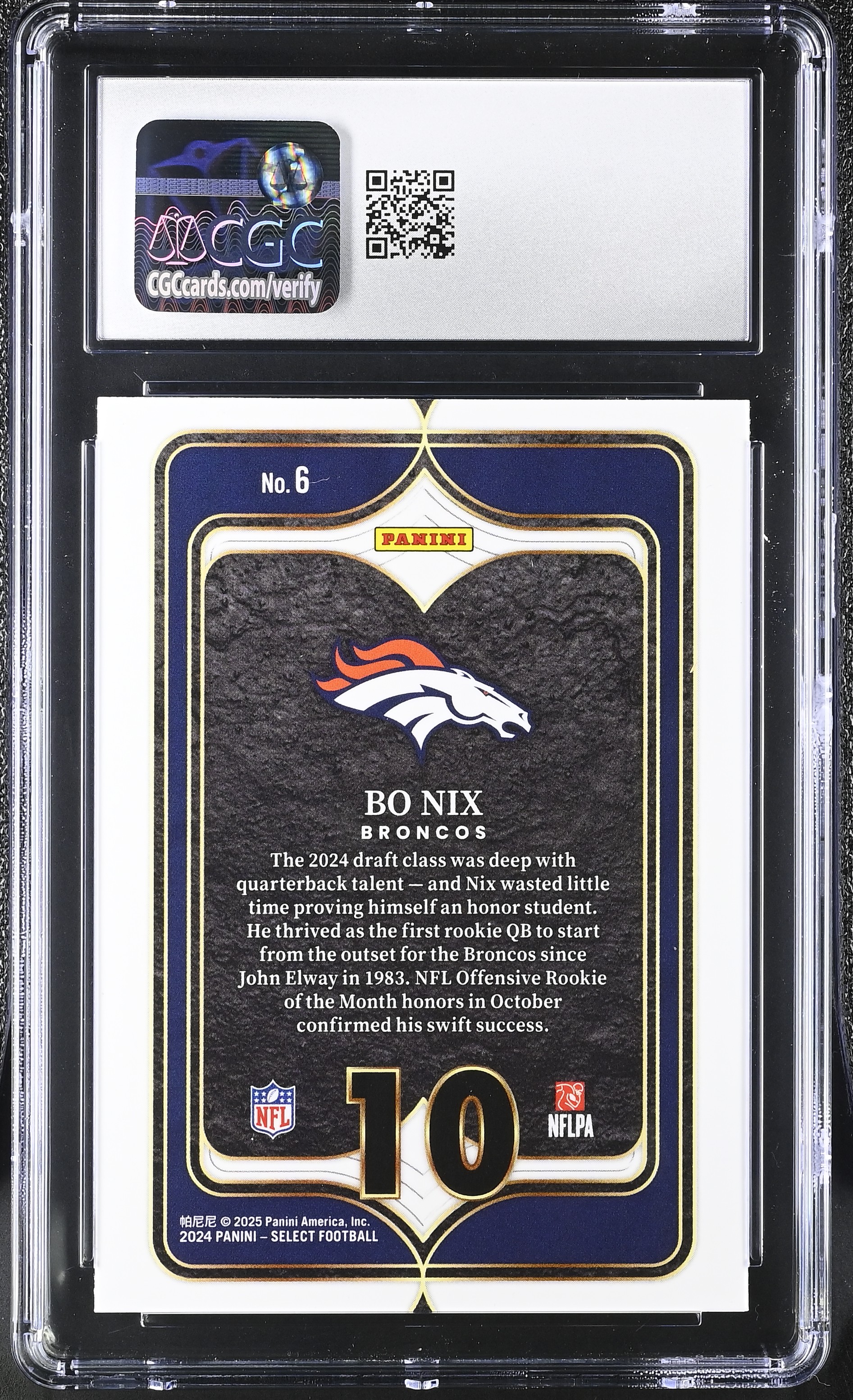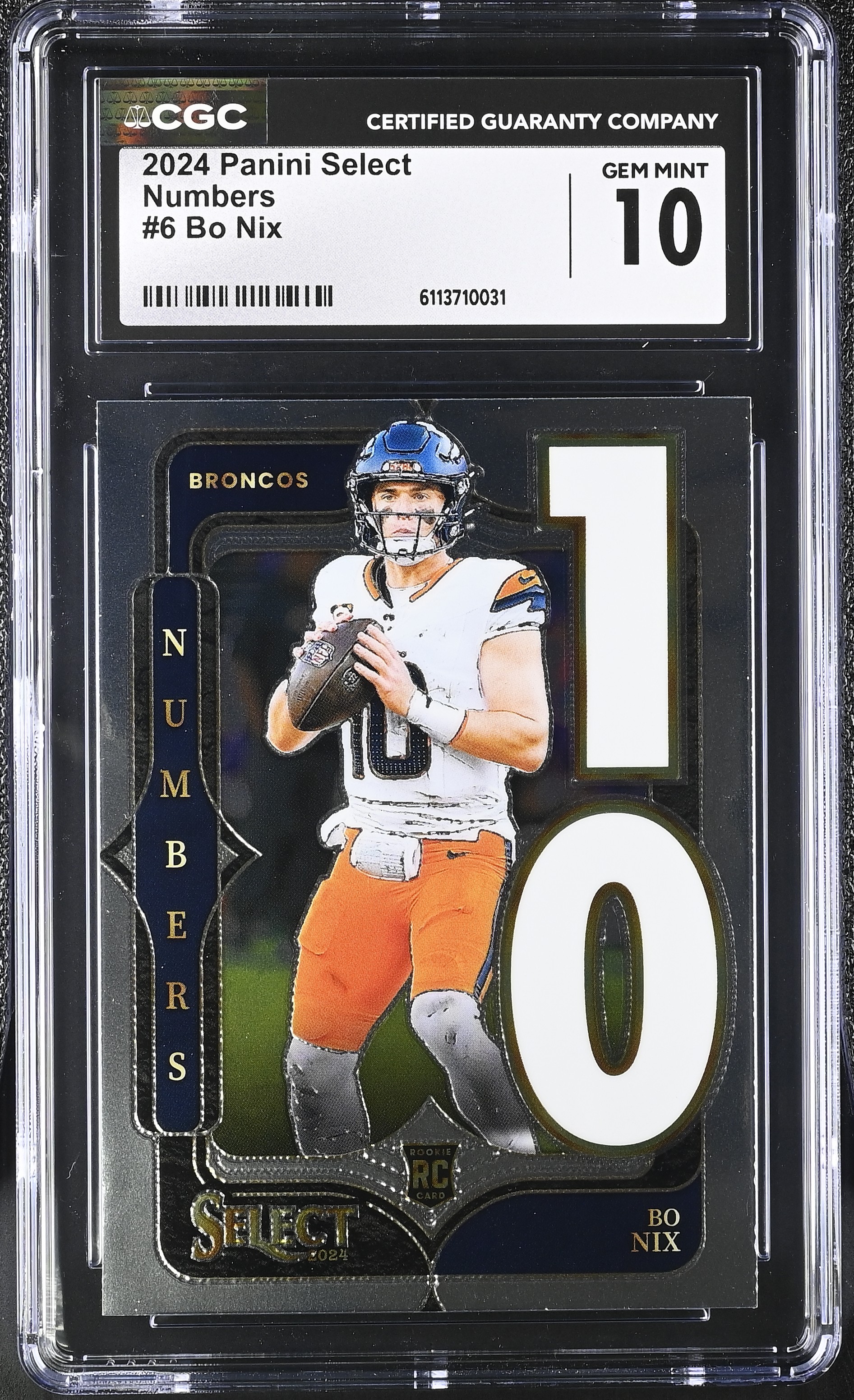 Bo Nix 2024 Panini Select Numbers #6 RC (CGC 10)