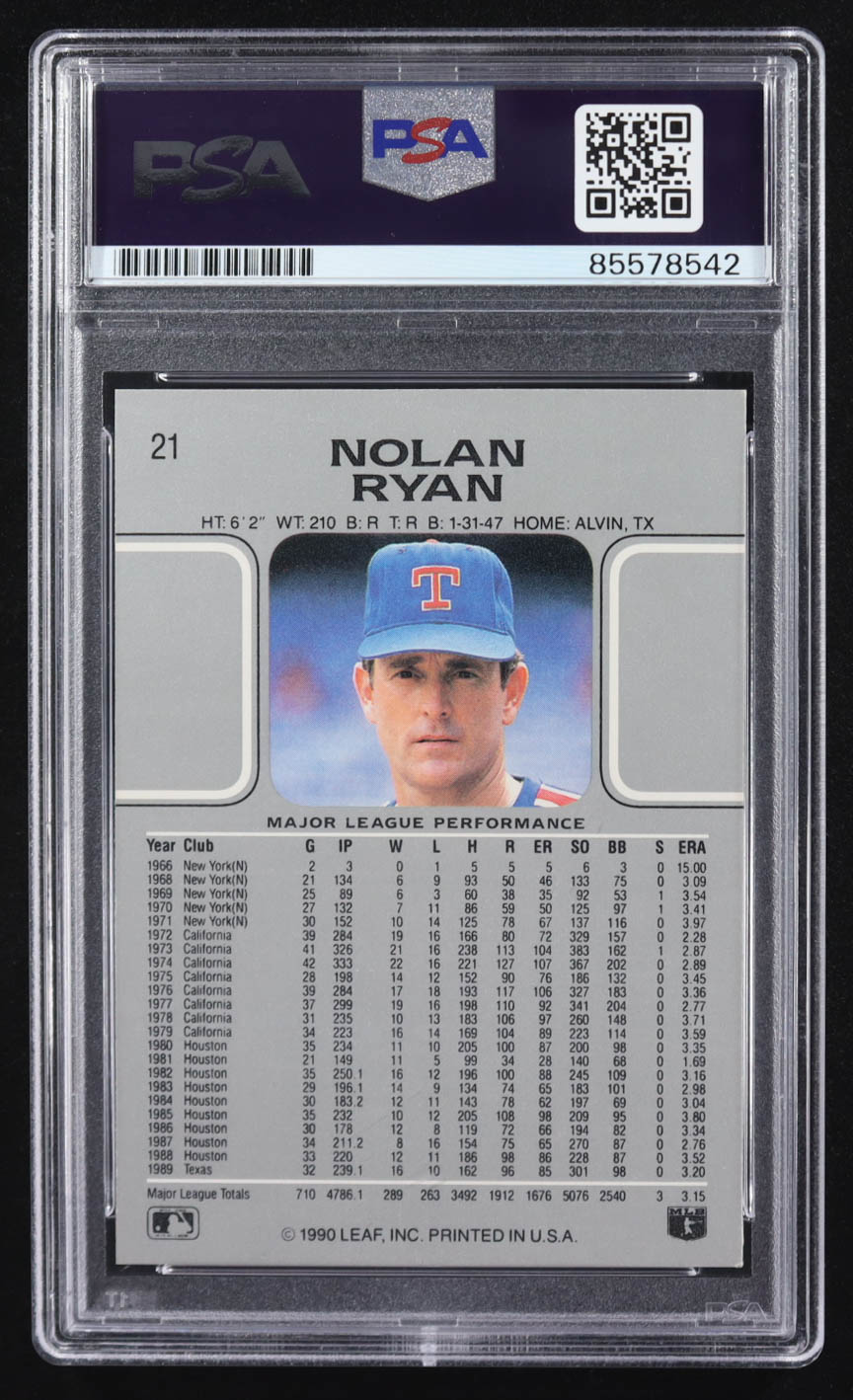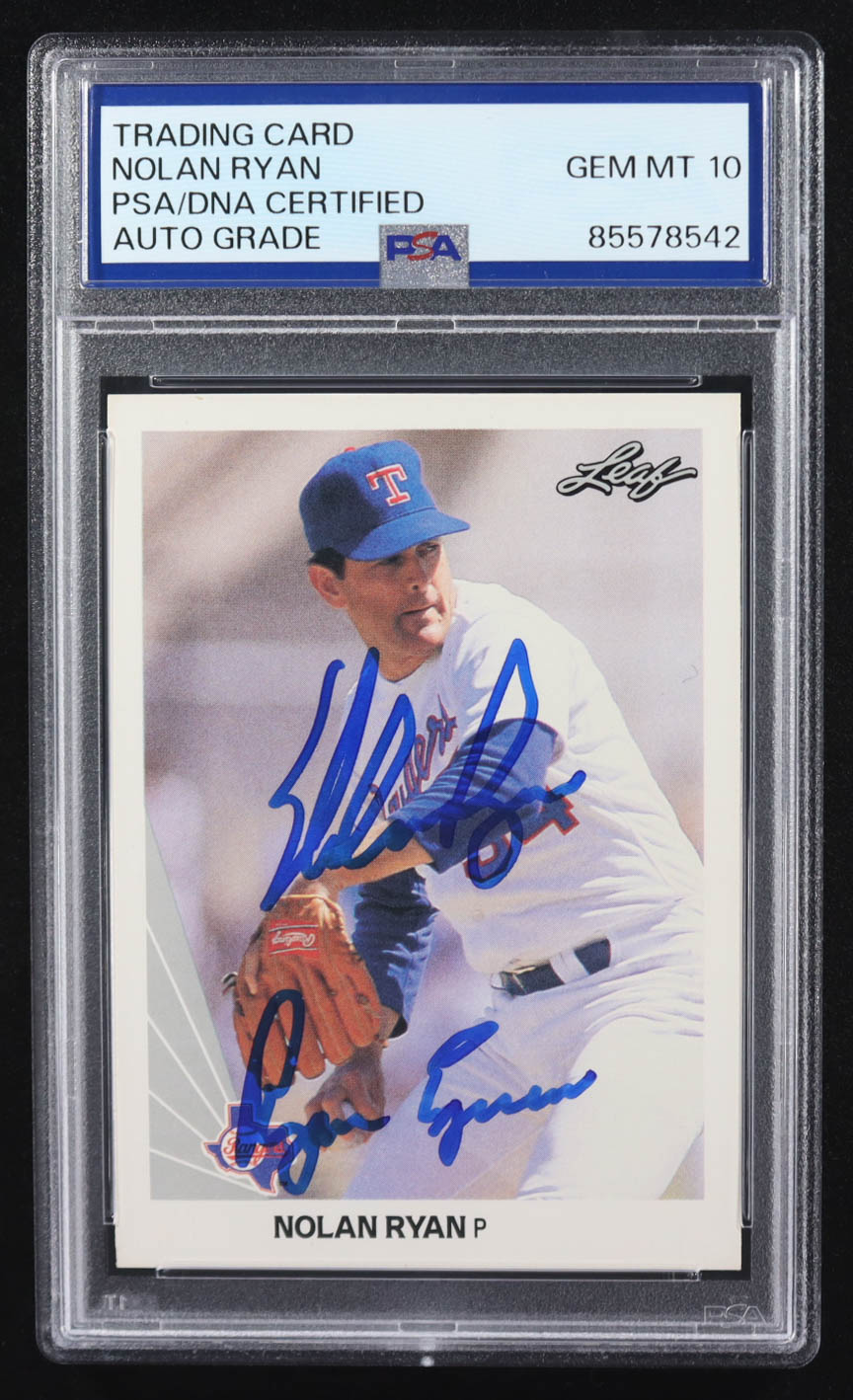 Nolan Ryan Signed 1990 Leaf #21 Inscribed "Ryan Express" (PSA | Auto Grade 10)