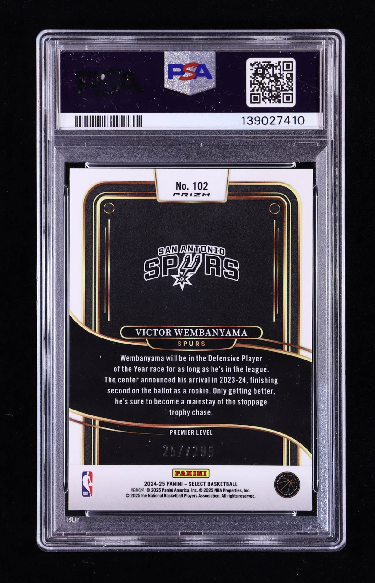 Victor Wembanyama 2024-25 Select Light Blue Prizms #102 #257/299 (PSA 10)