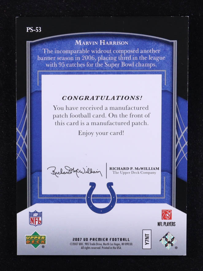 Marvin Harrison 2007 Upper Deck Premier Stitchings Team Logo/NFL Draft #PS53 #20/75