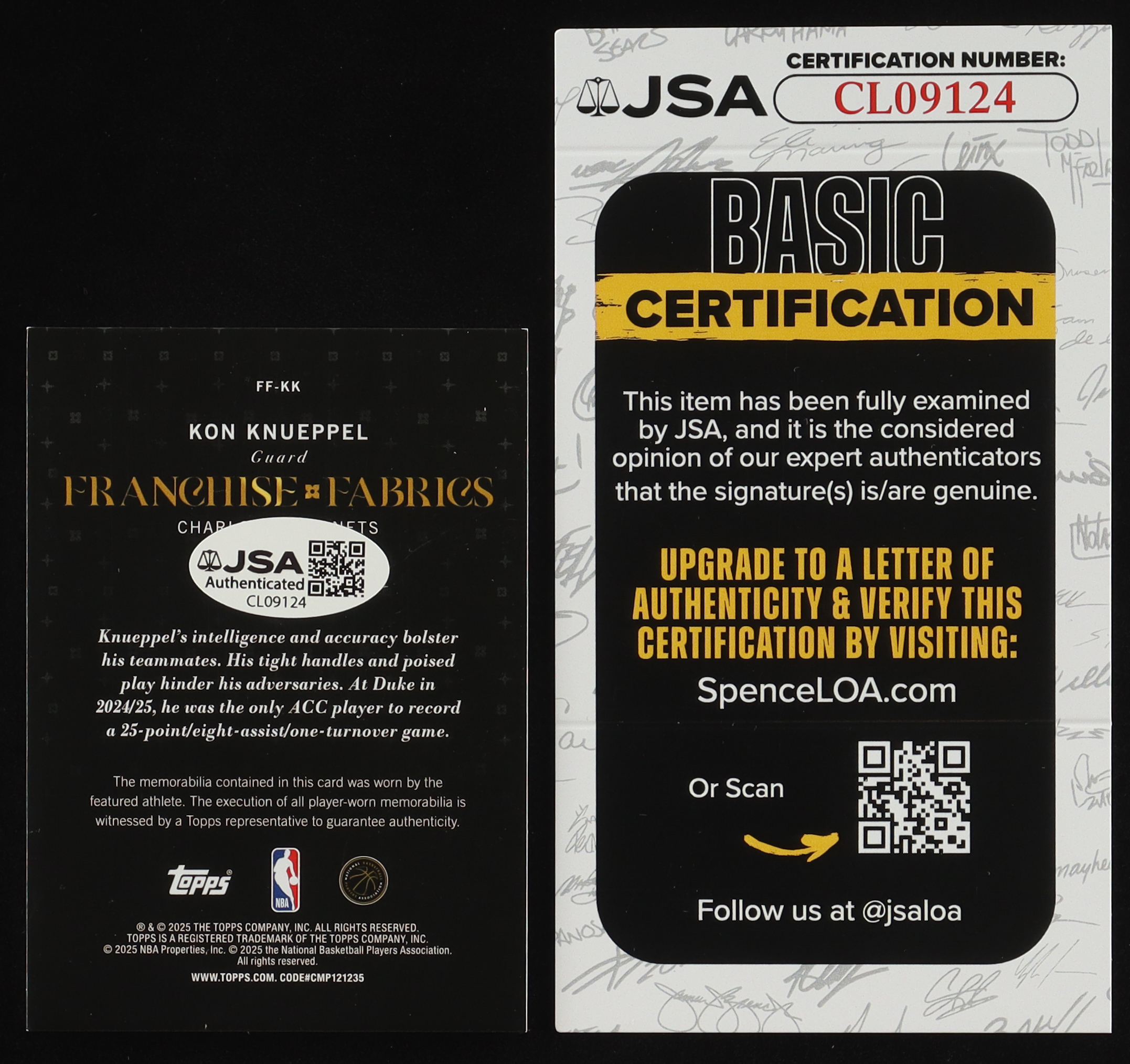 Kon Knueppel Signed 2025 Topps Franchise Fabrics #FF-KK (JSA)